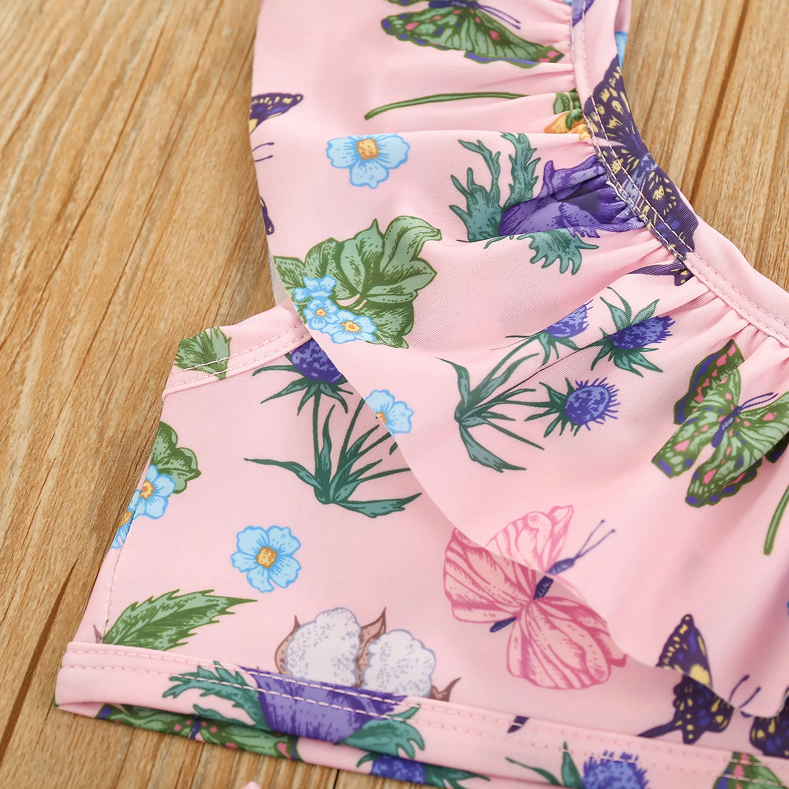 Одежда для купания для девочек, одежда для маленьких девочек летние купальные костюмы с оборками без рукавов и бретельками с цветочным рисунком + плавки, комплект одежды