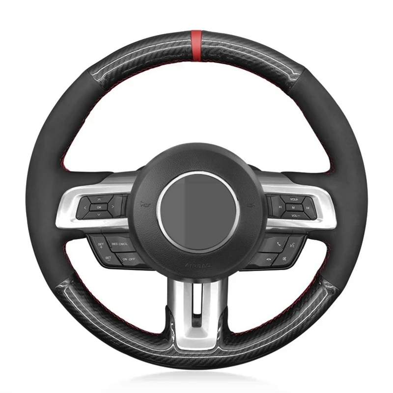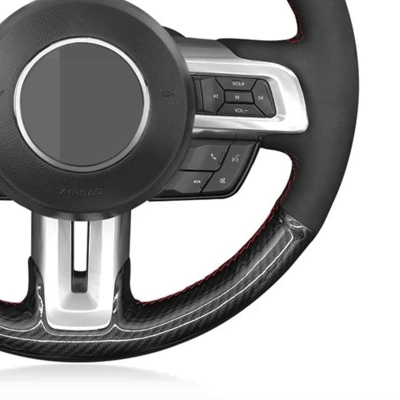 Чехол рулевого колеса автомобиля Мягкий Черный углеродного волокна Черная замша Обёрточная бумага для Ford Mustang 2015-2020 Mustang GT 2015 2017 2018 2019 2020