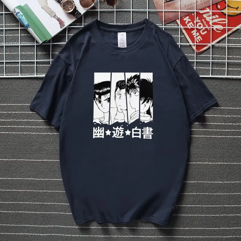 Новые футболки с Аниме Манга Yu Hakusho, хлопковые футболки Yusuke Urameshi с отцом днями, футболки Kazuma Kuwabara, футболки Kurama Hiei