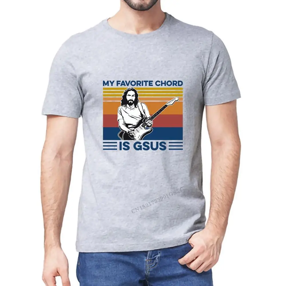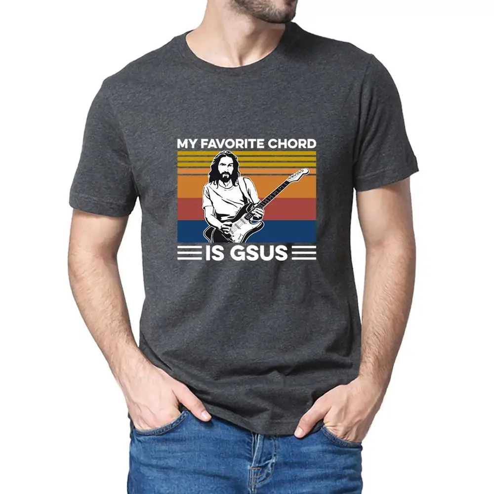 Мой любимый аккорд-гсус Иисус гитарра Spielen винтажная гитара, мужские тонкие свитшоты, хлопковая футболка, Забавные футболки