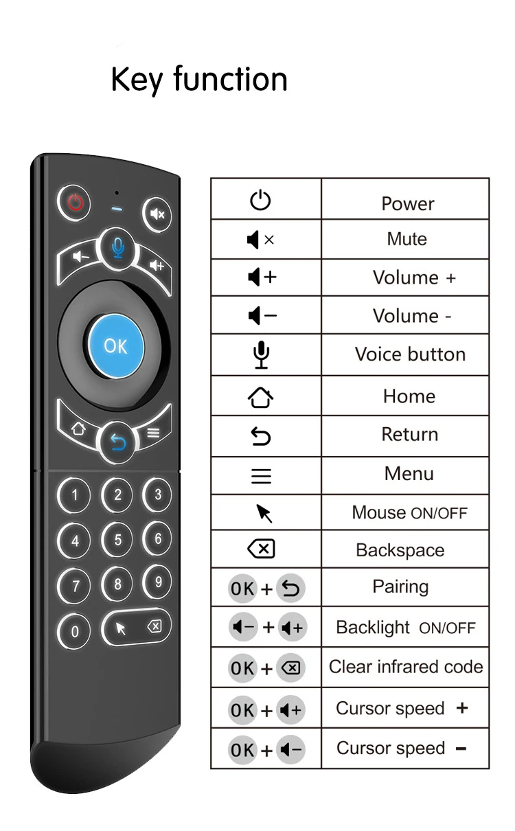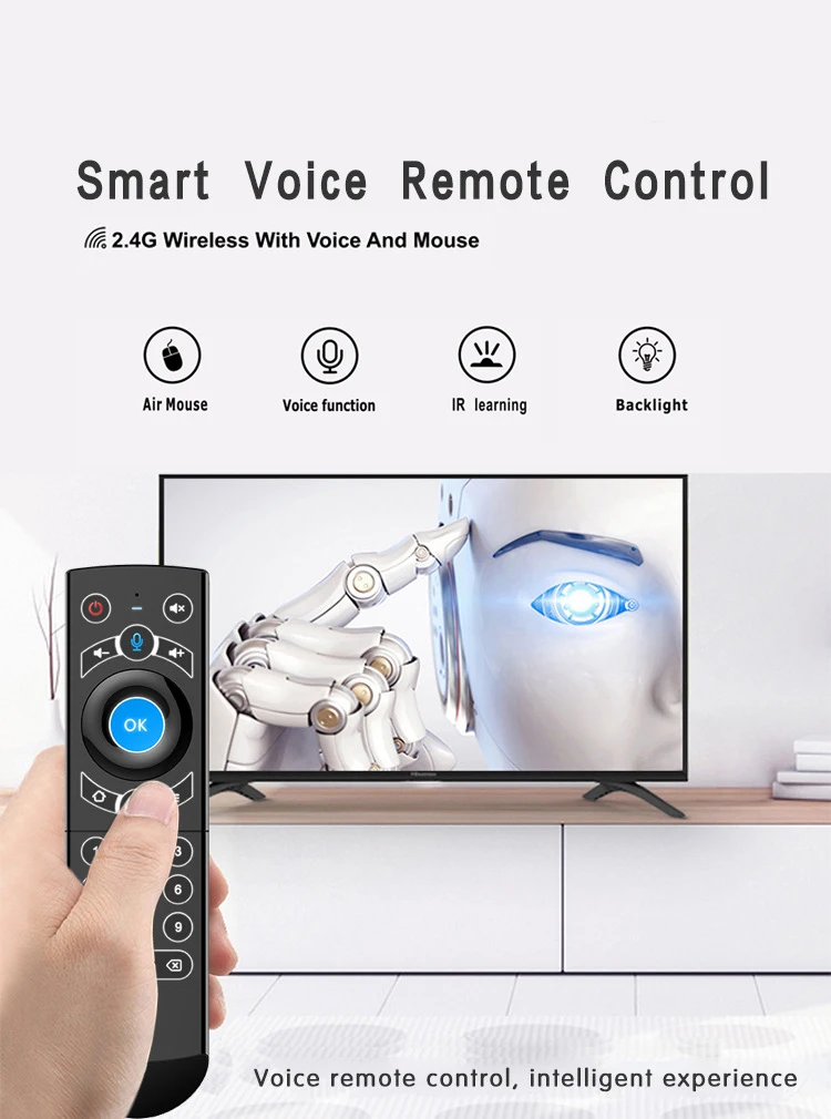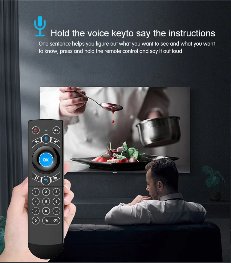 -Функция голосового поиска. Все, что вам нужно сделать, это спросить. Говорите в голосовом пульте дистанционного управления и TV Box ищет то, что вы хотите. Попросите лучшее в фильмах, в современной погоде или в последних новостях знаменитостей!
