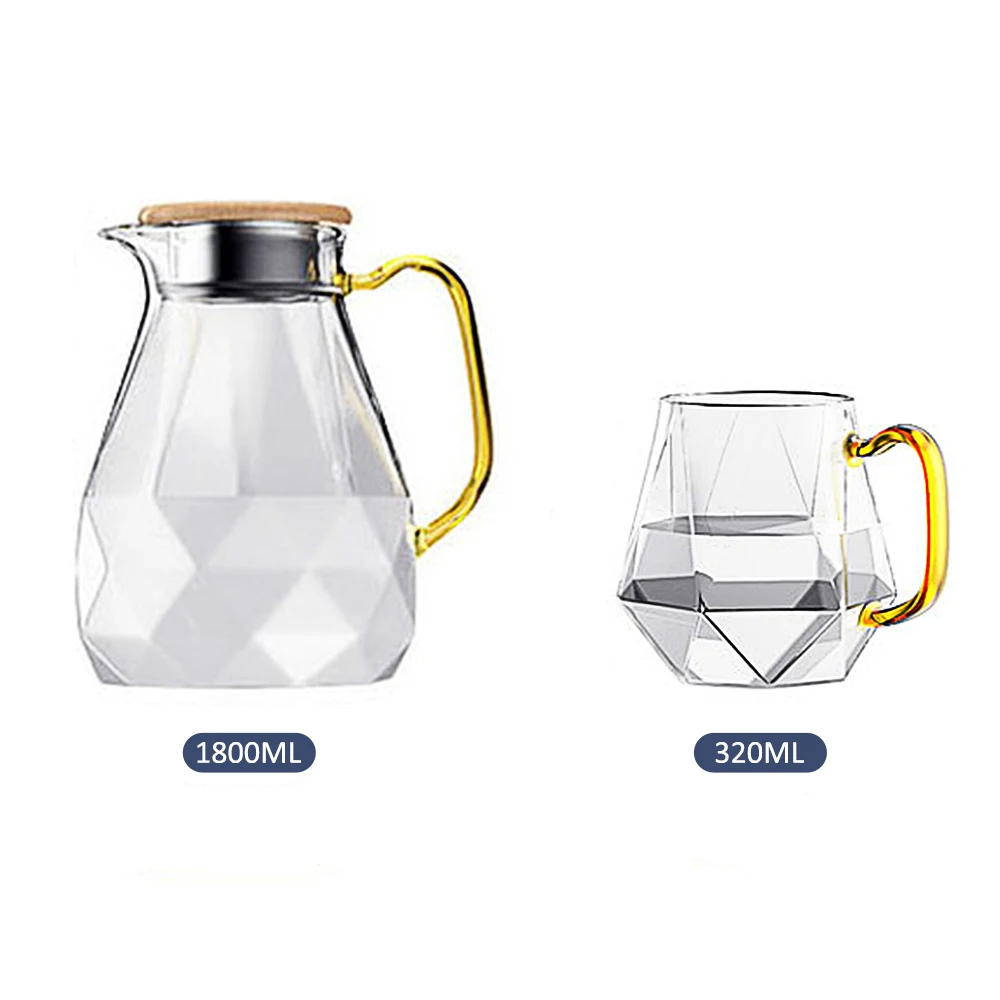 Набор стеклянных чайников, Прозрачный стеклянный чайник, Чайник с алмазной текстурой, Бутылка для воды, Чашки для воды, Термостойкая бутылка для воды,