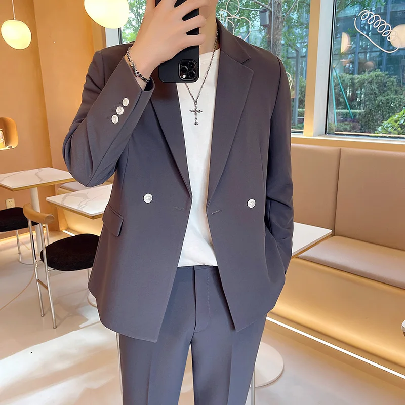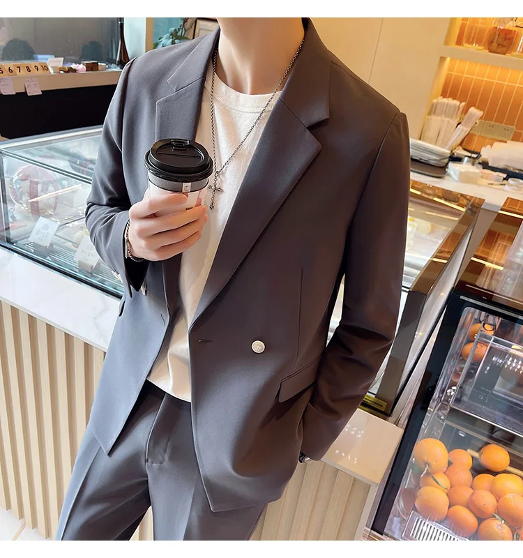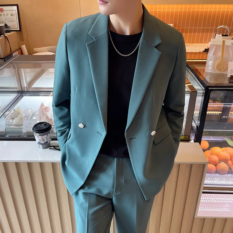 Костюм свадебный мужской из 2 предметов, простой однотонный Повседневный Блейзер и брюки, свободного покроя, уличная одежда, Размер 3XL, 2021