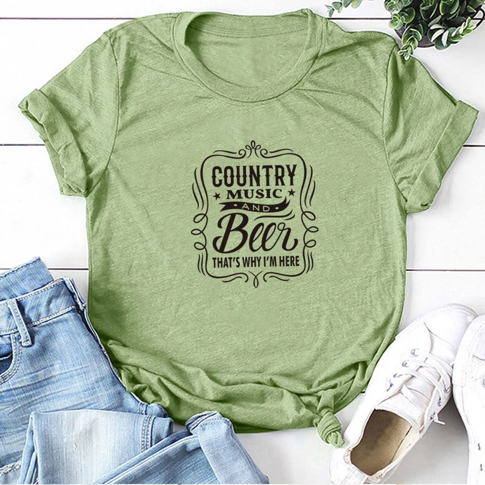 Женская мода женские летние топы, эстетичная одежда, рубашки, кантри музыка и пиво, вот почему я здесь, футболки с принтом