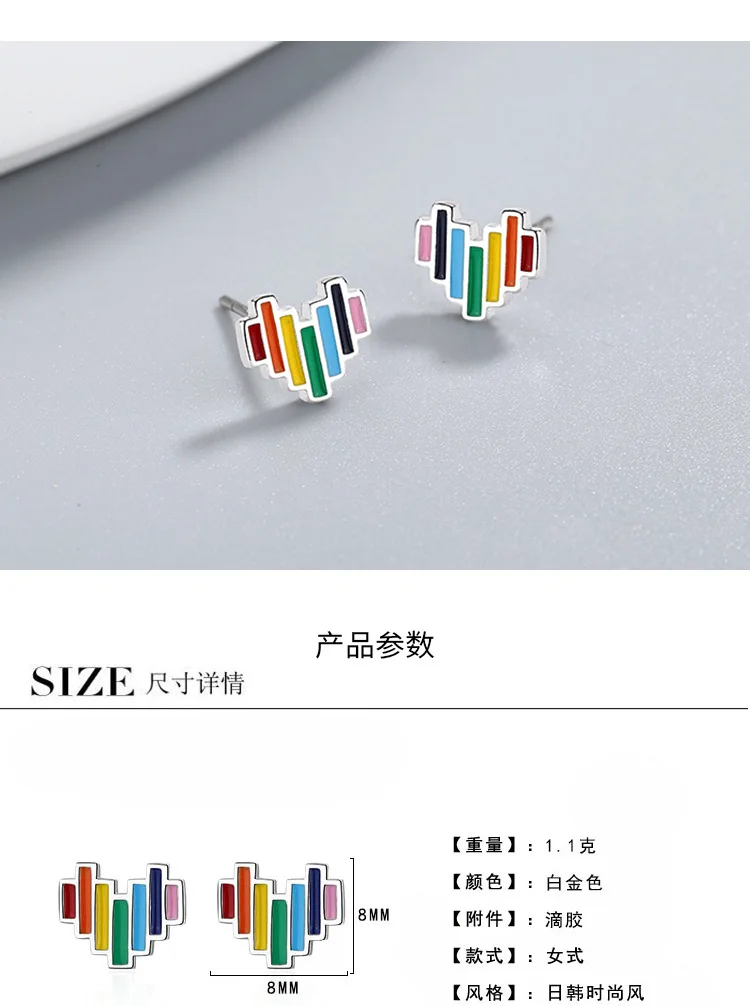 Модные серебряные ювелирные изделия 925 пробы, серьги в форме сердца и радуги для женщин, корейские простые винтажные подарочные серьги для девушек и женщин