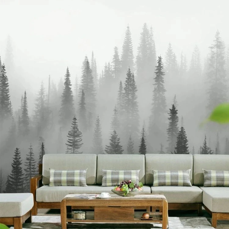 Самоклеящиеся фотообои на заказ, с эффектом тумана, с эффектом омбре, пейзажем, безмятежной природы, леса, водостойкие Фоновые наклейки