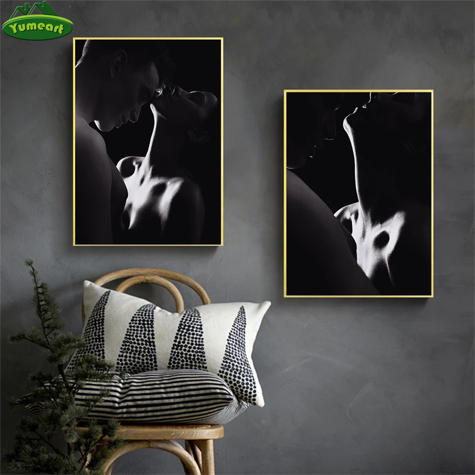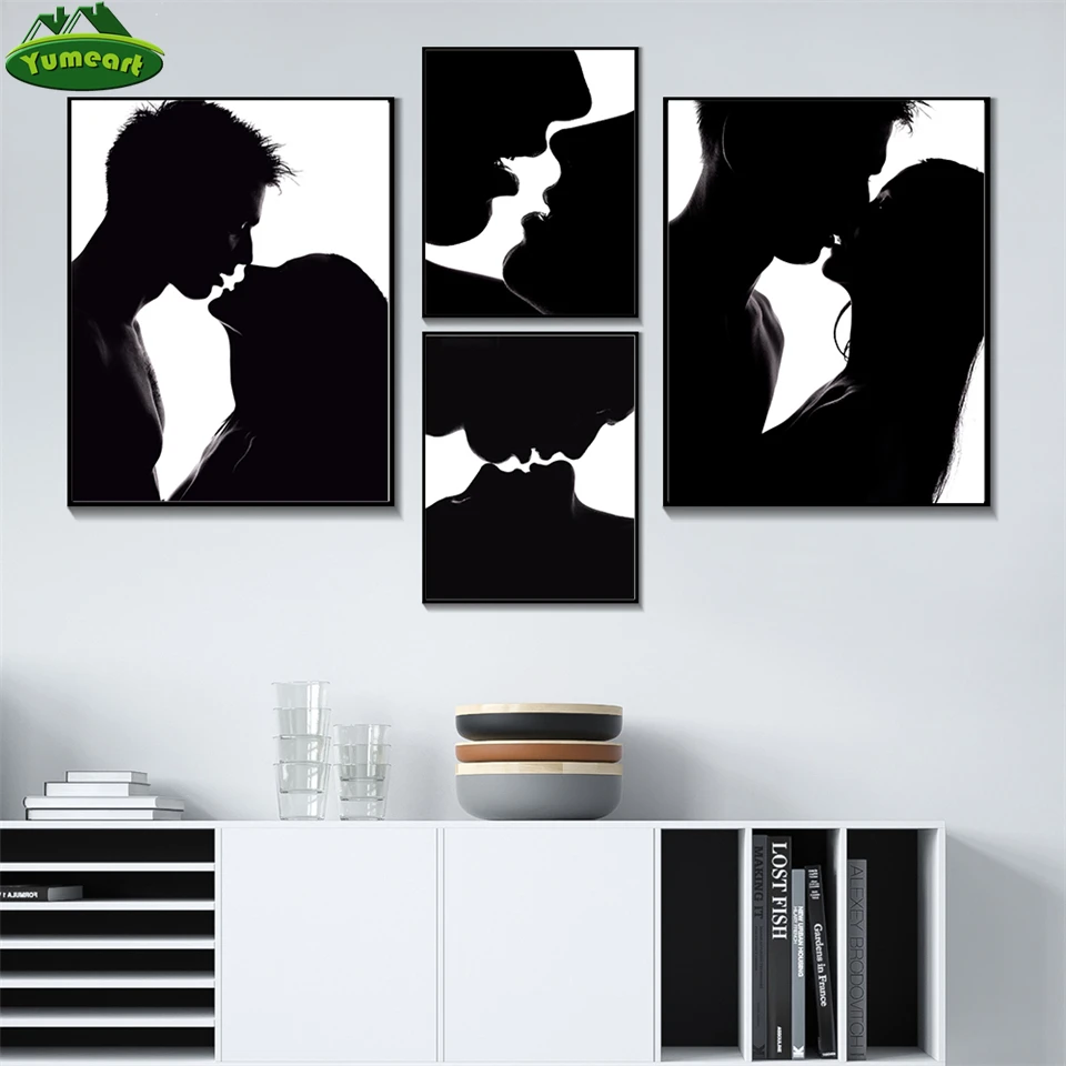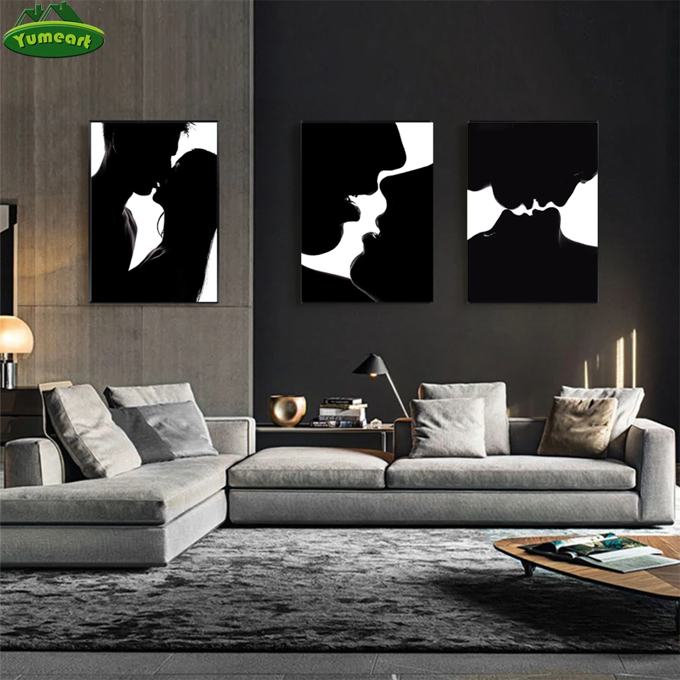 Черно-белая женщина мужчина целующиеся любовник силуэт искусство холст живопись плакат и принты стены пикторы для гостиной домашний декор