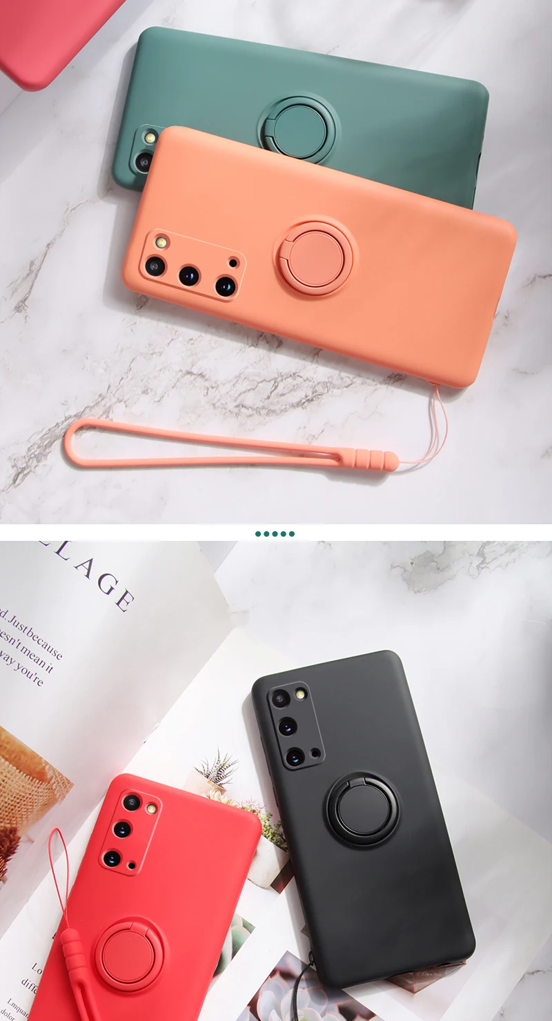 Чехол для телефона из жидкого силикона с ремешком на руку и кольцом...