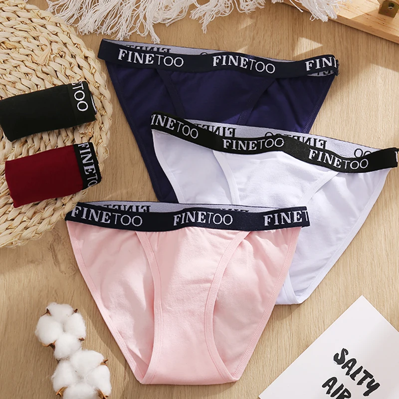 FINETOO M-XL с низкой посадкой хлопковые короткие женские трусы дамское нижнее белье сексуальные письмо пояс под белье удобные постельное белье 3 шт.компл.