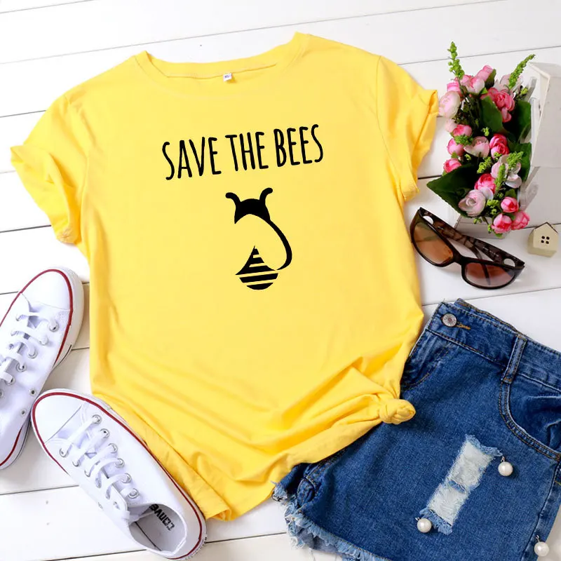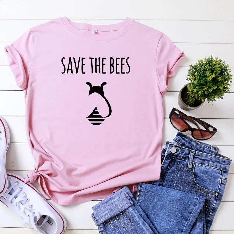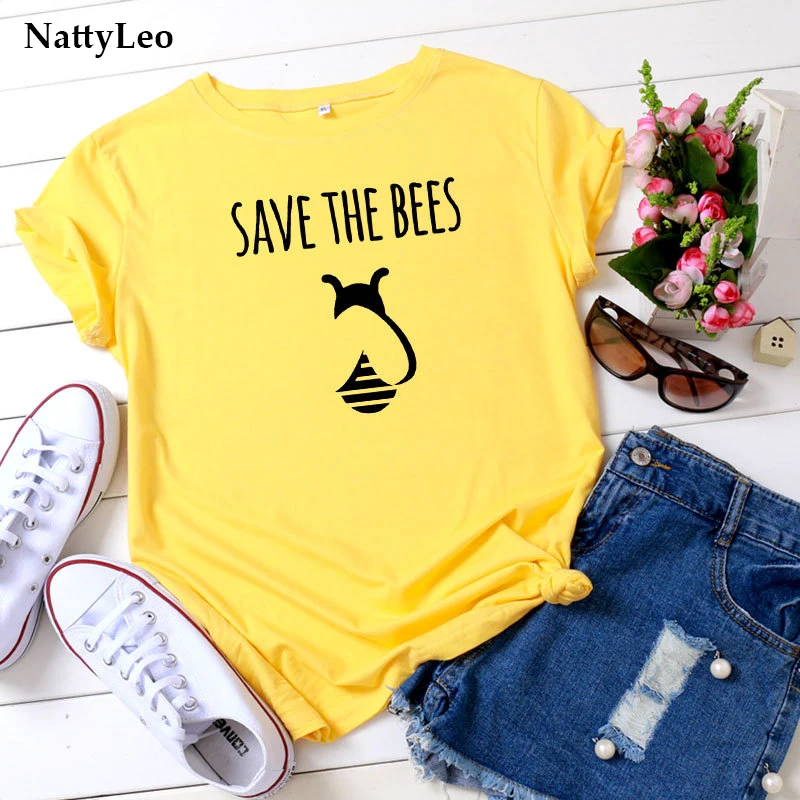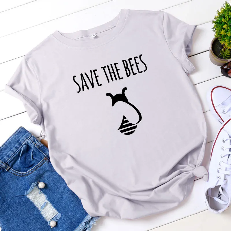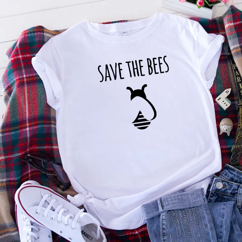 Женская футболка с круглым вырезом, коротким рукавом и принтом пчелы