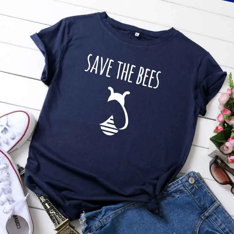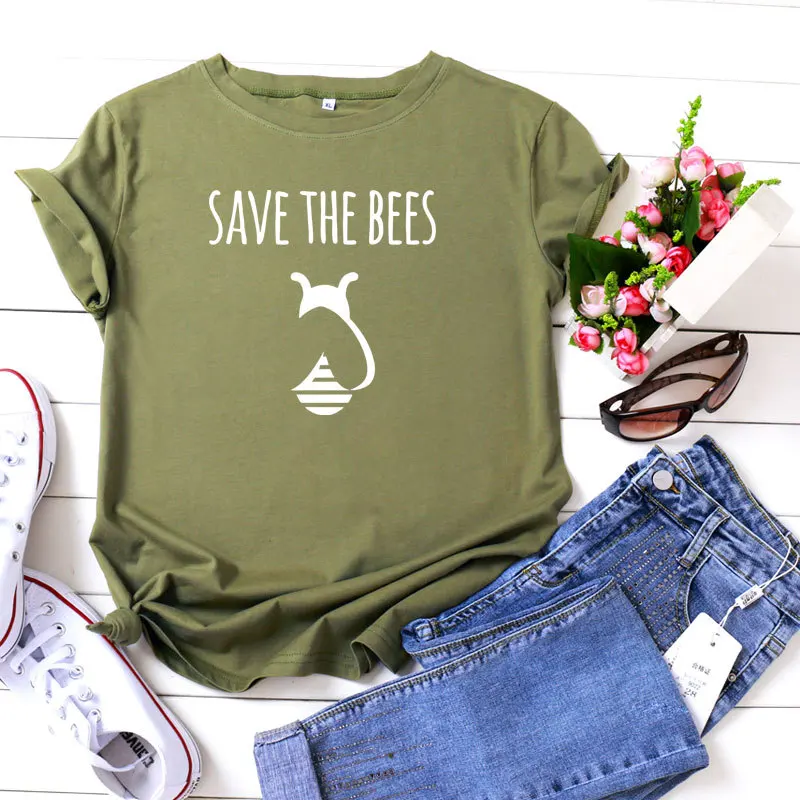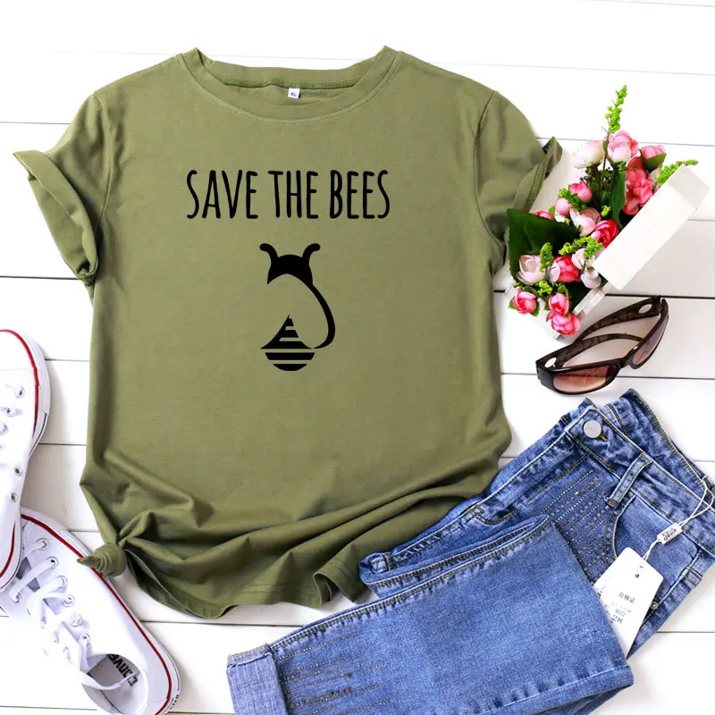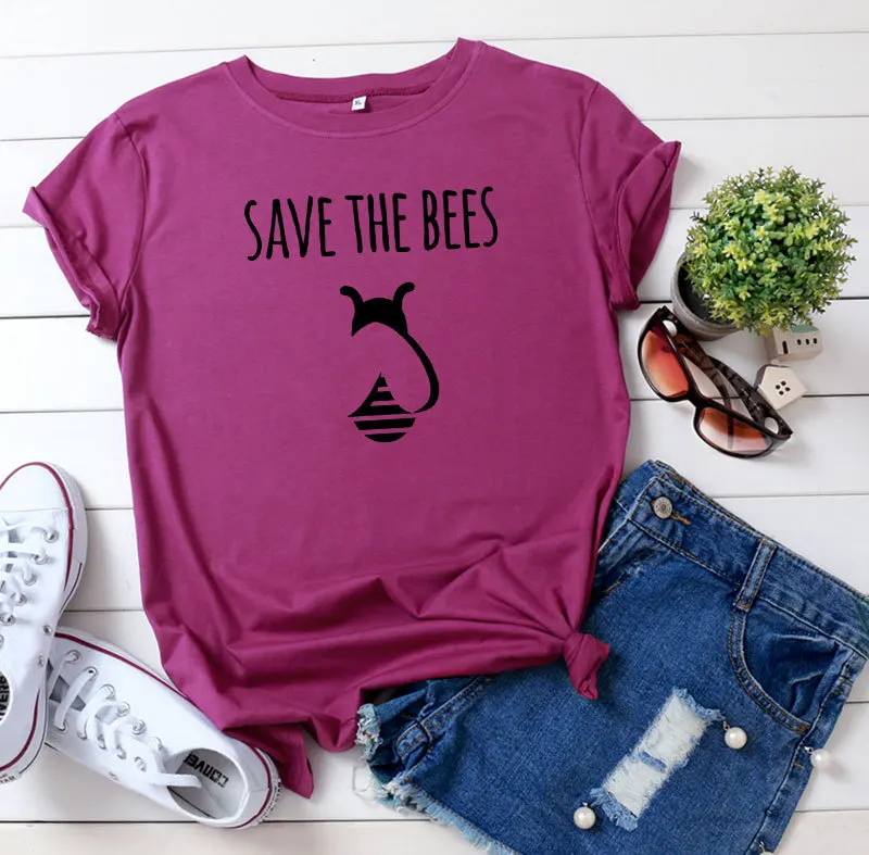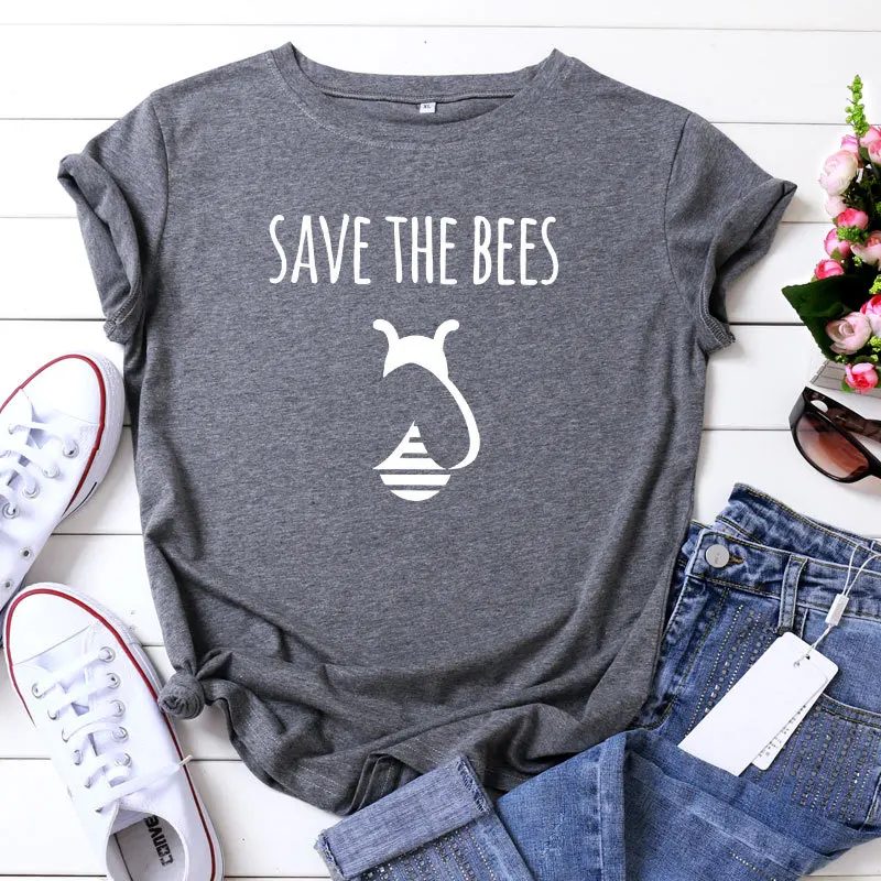 Женская футболка с круглым вырезом, коротким рукавом и принтом пчелы