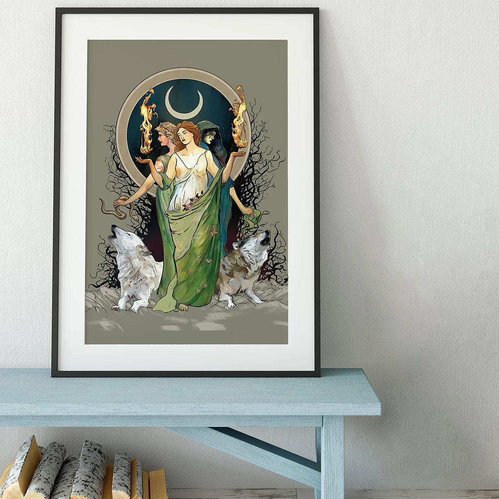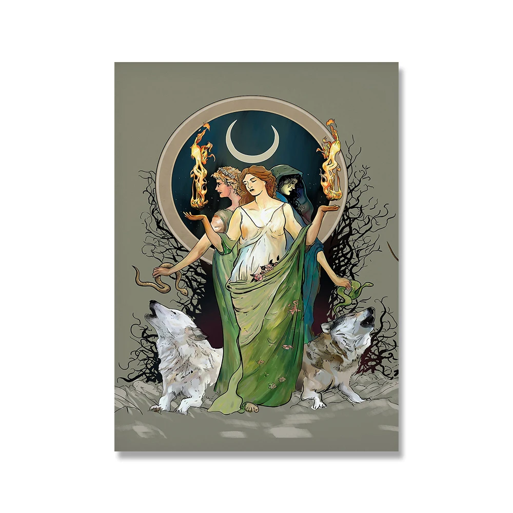 Картина на холсте WTQ с изображением таинственной Луны, богини, Геката, ретро-постер, настенное украшение, картина для украшения гостиной, украшение для дома