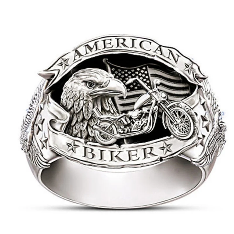 Винтажное серебряное кольцо с резьбой по дереву Американский Байкерский Орел для мужчин Панк модные ювелирные изделия мотоцикл ювелирные изделия Клубная вечеринка Подарочное кольцо