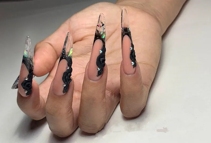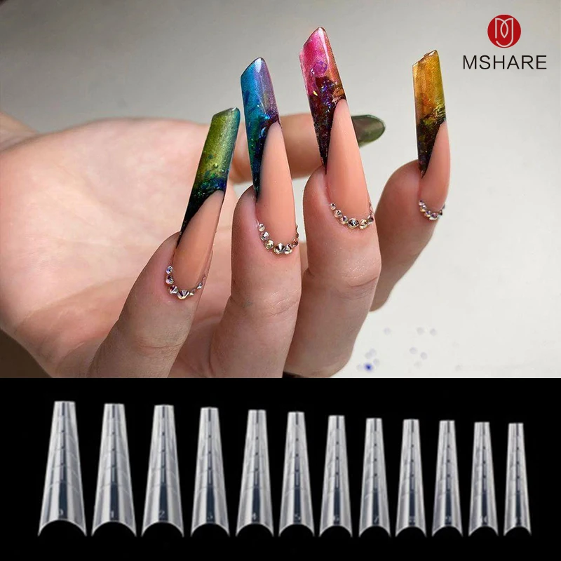 1. Слегка нанесите поверхность ногтя2. Нанесите очень тонкий слой базового покрытия и закрепите его под УФ/светодиодной лампой.3. Выберите подходящую форму и размер накладных ногтей.4. Нанесите акриловый гель на двойная форма кончиков для ногтей, используйте ручку для кистей с раствором для скольжения, чтобы сделать гель гладким.5. Прикрепите его к ногтевой пластине и высушите под УФ/светодиодной лампой 30-60 с.6. Удалите кончик ногтя, обрежьте форму и отполируйте ногти.7. Нанесите верхнее покрытие и закрепите его под УФ/светодиодной лампой.8. Готово