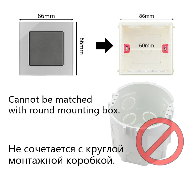 ✔✔✔Все товары в этом магазине не могут использоваться с круглыми монтажными коробками. ✔✔✔Пожалуйста, выберите правильный размер в соответствии с размером продукта.