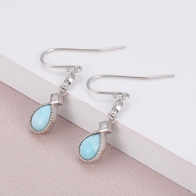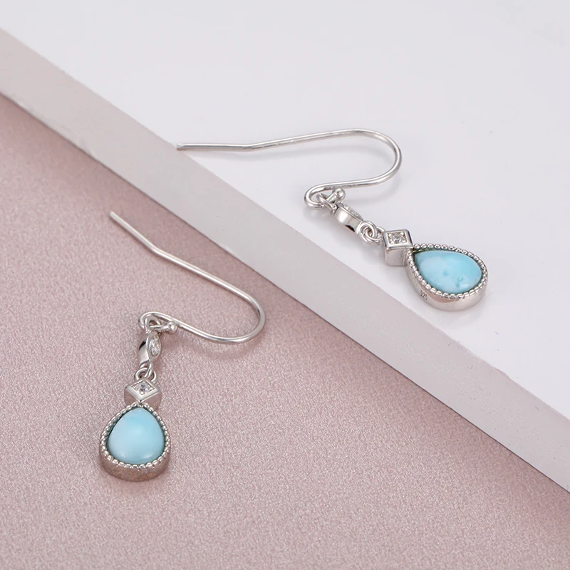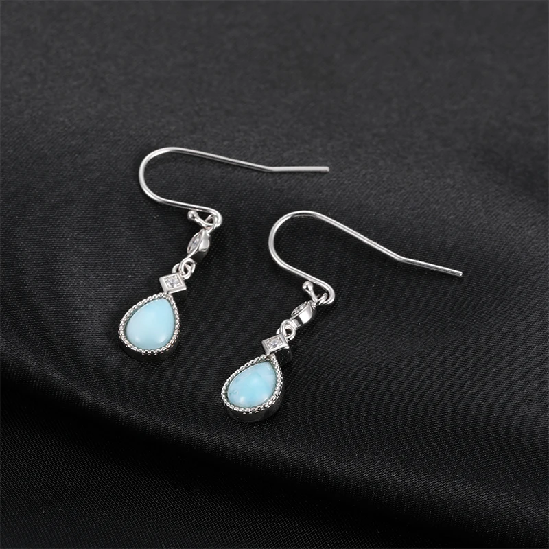 Женские драгоценные серьги с ларимаром, модные геометрические РЕТРО очаровательные ювелирные изделия из стерлингового серебра 925 пробы, подарок серьги-подвески с цирконом