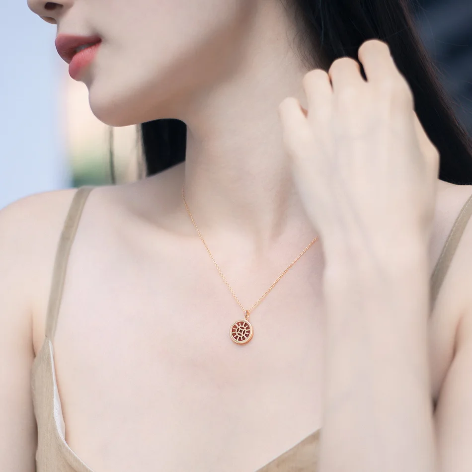 ALLNOEL цельный кулон из стерлингового серебра для женщин 12*12 мм. Красный агат круглое модное ожерелье годовщина хорошее ювелирное изделие 2021 новый подарок
