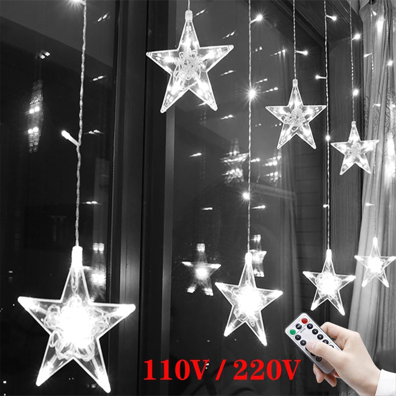Гирлянда Фея светильник s светодиодные лампочки звездочки, нитяная штора светильник на открытом воздухе для вечерние номер Новое поступление на Новый год Свадебные Рождество дома гирлянда украшения
