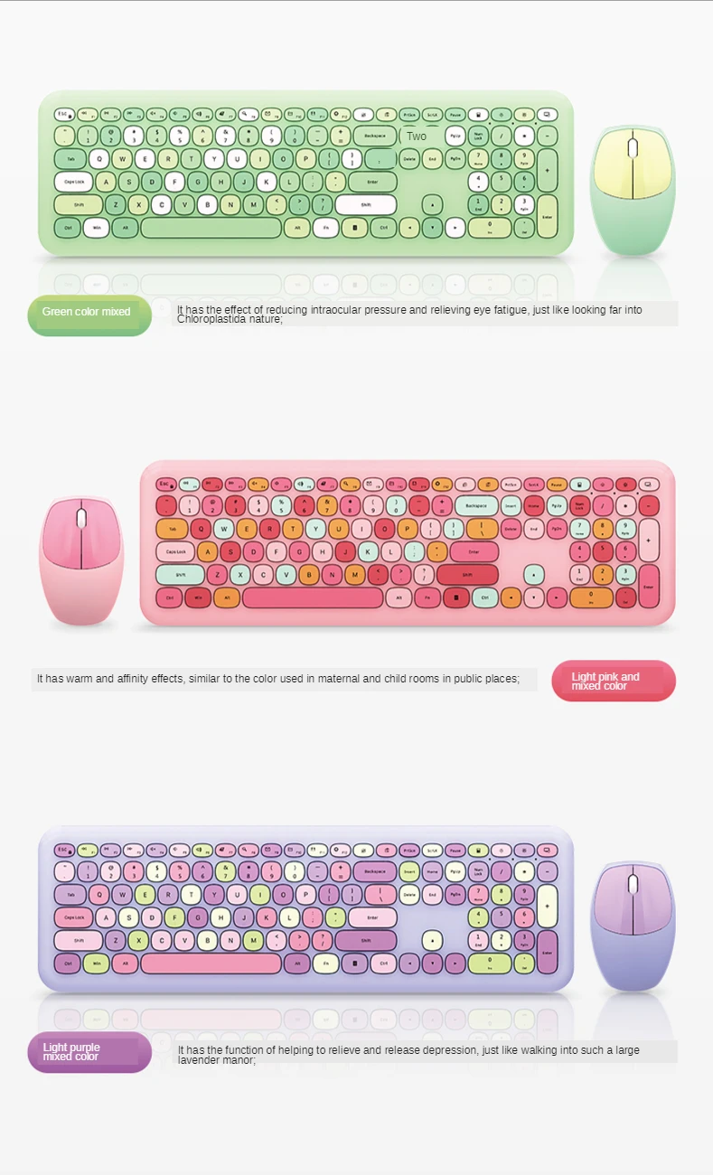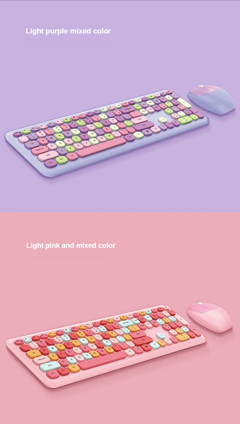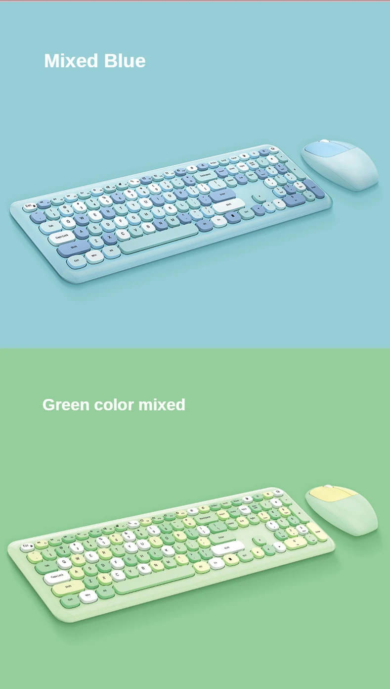* Великолепный дизайн: Mofii Беспроводная Милая клавиатура и мышь с классическими круглыми колпачками, уникальный дизайн смешанного цвета, сделает вашу работу полной удовольствия.* Эргономичный дизайн: клавиши чувствуют себя очень комфортно, умеренная эластичность, отсутствие шума, эргономичный дизайн угла, что позволяет пальцам хорошо расслабляться при наборе текста.* Простое и быстрое подключение: Беспроводная клавиатура и мышь используют 2,4 ГГц Технология беспроводного подключения. Вы можете подключить клавиатуру и мышь к устройству одновременно с помощью беспроводного usb-приемника. Операция проста, и соединение стабильное.* Функция автоматического энергосбережения: клавиатура или мышь автоматически войдут в режим сна, чтобы сохранить заряд батареи, когда нет операции. Нажмите любую клавишу, чтобы немедленно проснуться.* Широкая совместимость: он может быть подключен ко многим устройствам, таким как ПК, ноутбук, ноутбуки, планшеты и подходит для Windows, Win10/8/7, Android и т. Д.* Тихая клавиатура: клавиатура и мышь тихие, отзывчивые и надежные, с эргономичным дизайном для клавиатуры и крутых оптических мышей в форме спортивного автомобиля, комбо может помочь вам наслаждаться вашим рабочим временем.