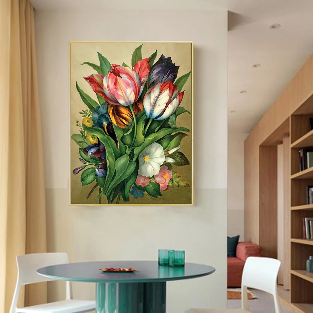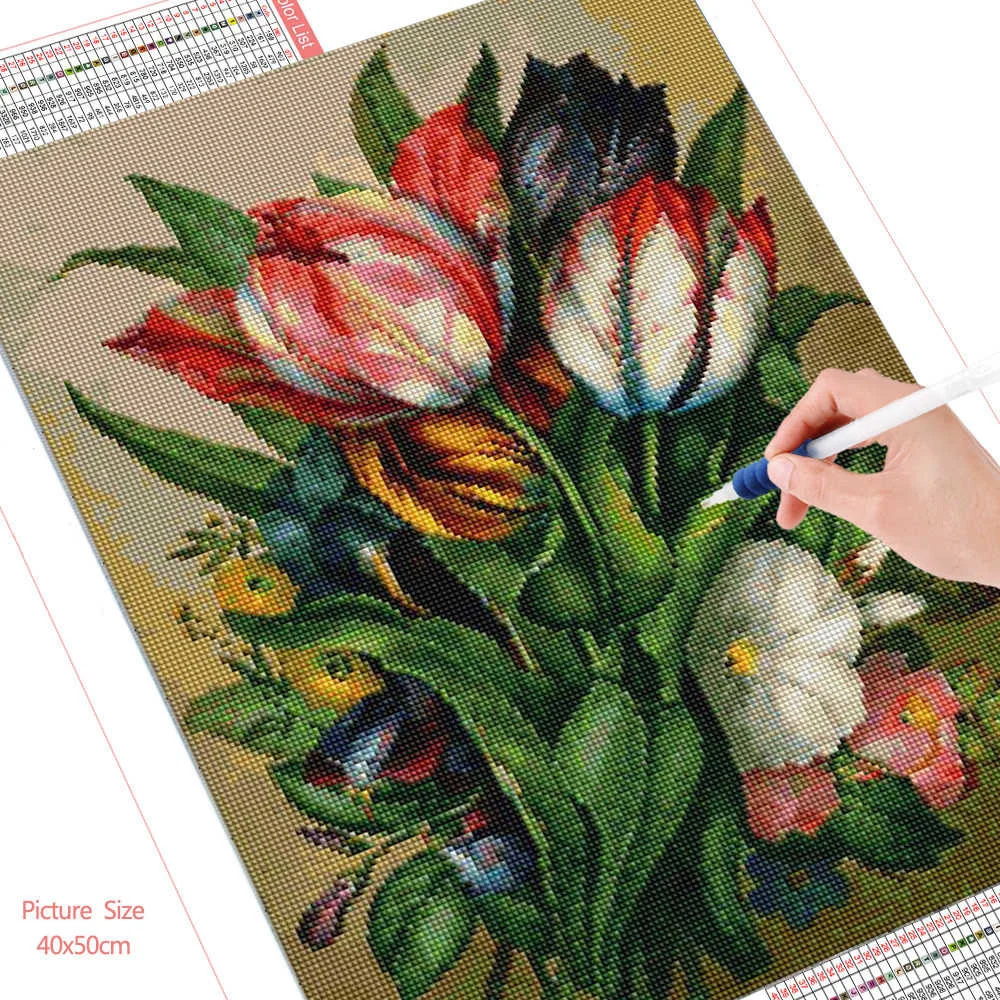 Алмазная живопись HUACAN, живопись с цветами тюльпанов, полноразмернаякруглая мозаика, вышивка крестиком, настенные наклейки