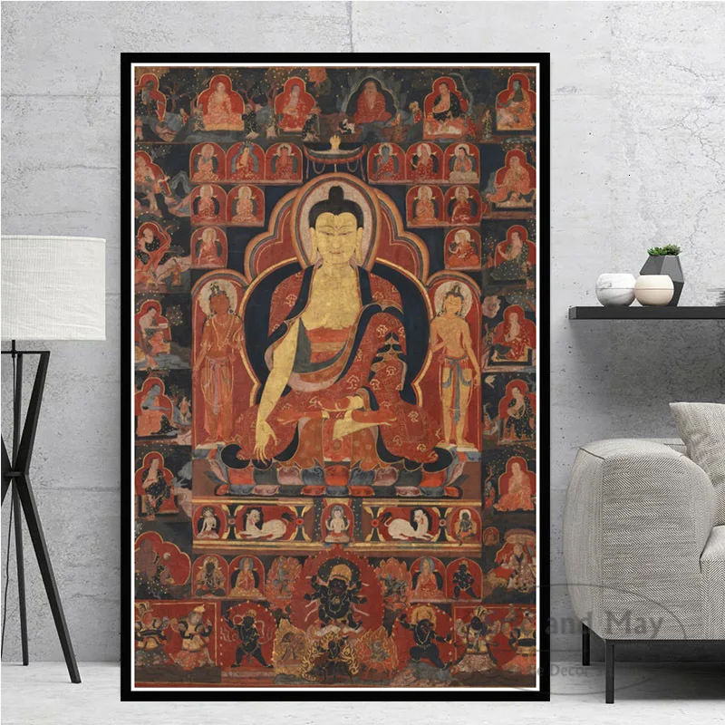 Sakyamuni And Arhat Thangka тибетская буддистская искусственная живопись на холсте винтажный декоративный домашний декор