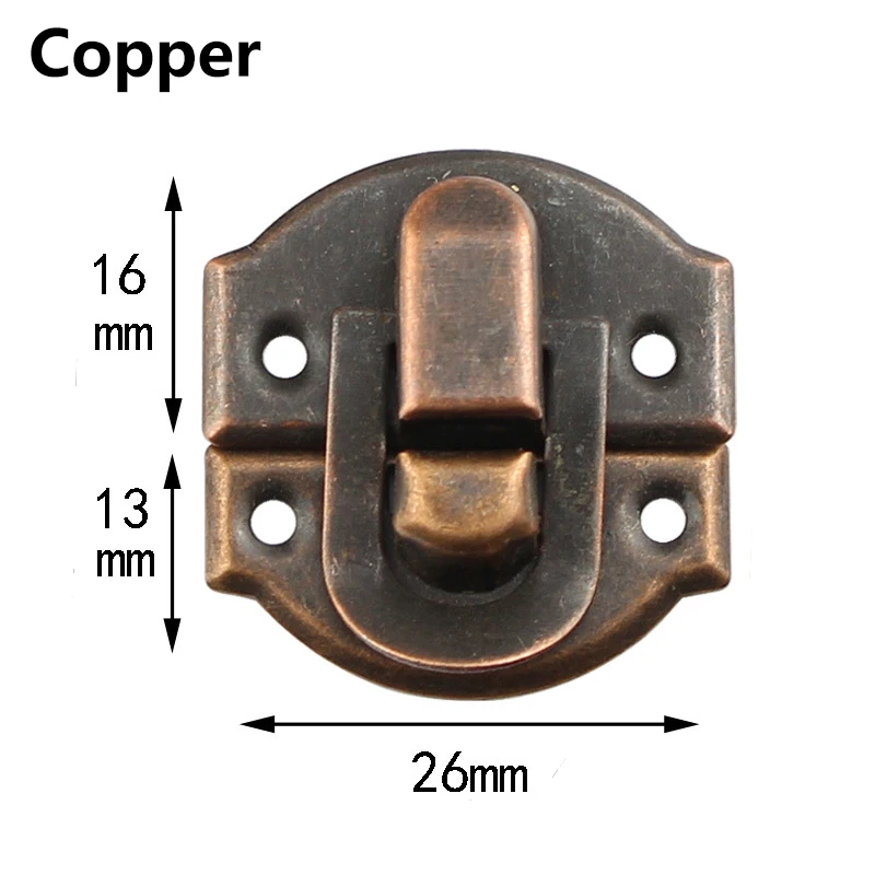Название продукта: деревянная шкатулка с пряжкой Категория продукта: замок для шкатулки для драгоценностей Цвет: серебро, золото, медно-красный, бронза Материал: железо Размер: S, 20x21 мм L, 26x29 мм Упаковка: пакет OPP Комплектация: замок для деревянного ящика защелкивающийся крючок X1