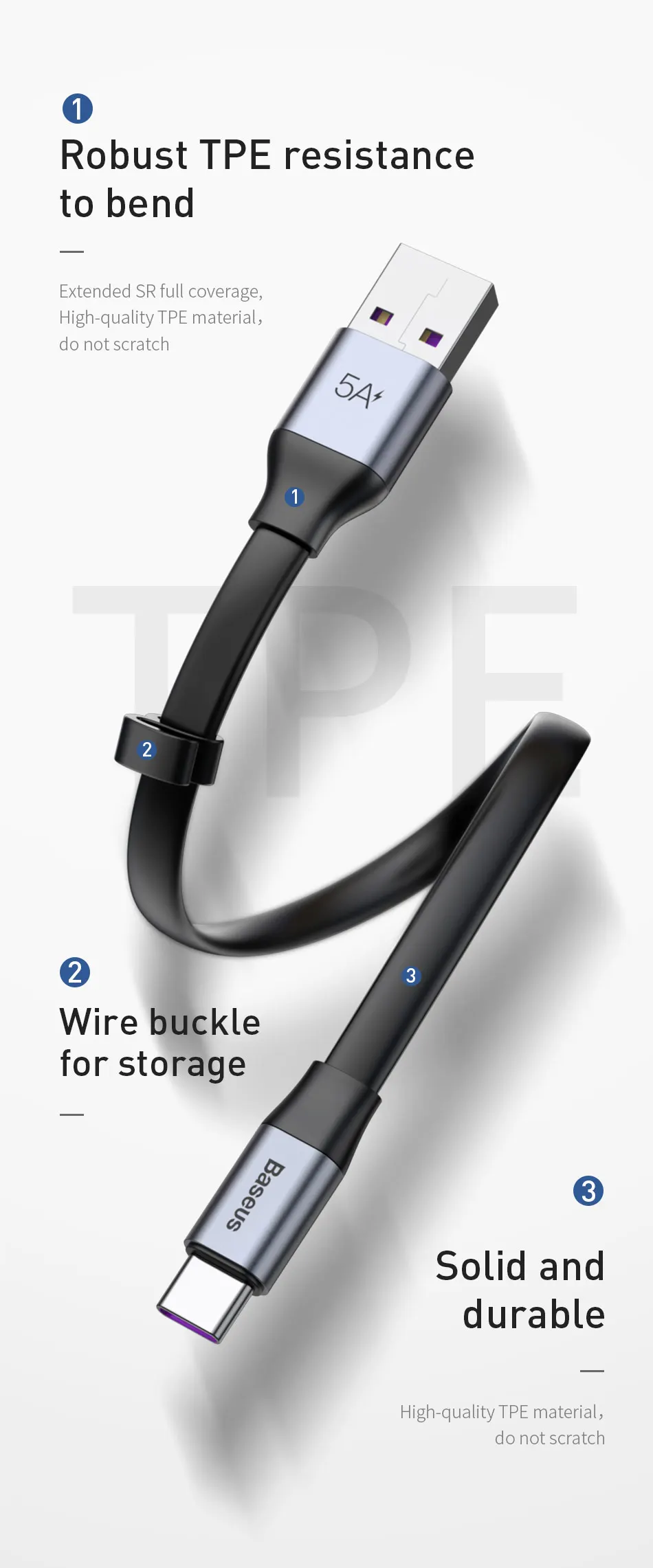 Кабель Baseus 23 см 5 А USB Type-C для Huawei P30 P20 Mate 30 20 P10 Pro Lite, зарядное устройство для быстрой зарядки, кабель USB C Type-c для Xiaomi