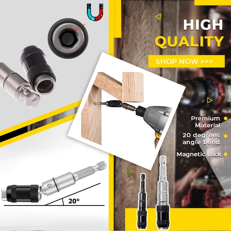 Магнитный держатель сверлаИмеетШарнирная шаровая ГоловкаДля установки винтов с помощью портативной электрической дрелиНедоступные места, Где сверлильный патрон станка будет помехой. Он можетПоворот до 20 градусовДля любогоПрямой или наружный ход.Идеально подходит дляУзкие пространства и углы.