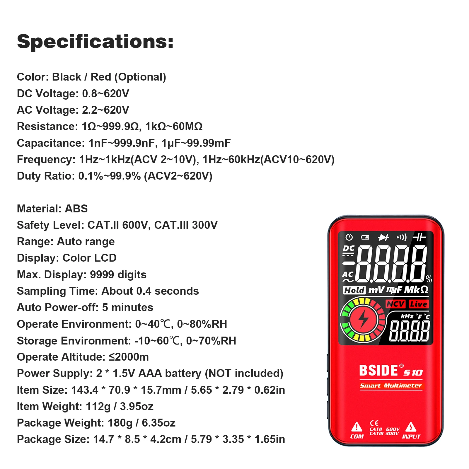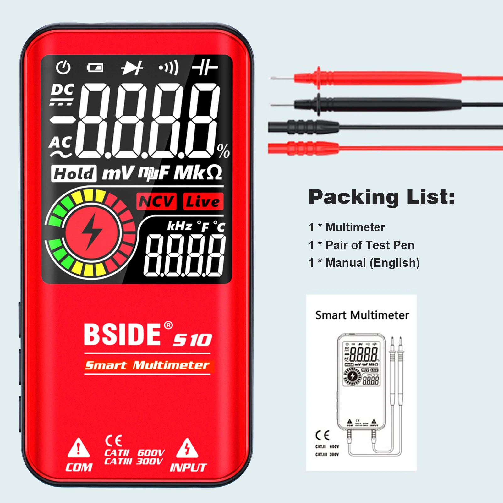 Мультиметр BSIDE S10, 9999 отсчетов, цифровой вольтметр переменногопостоянного тока, Омметр, тестер сопротивления, емкости, частоты, диодов, проверка целостности цепи