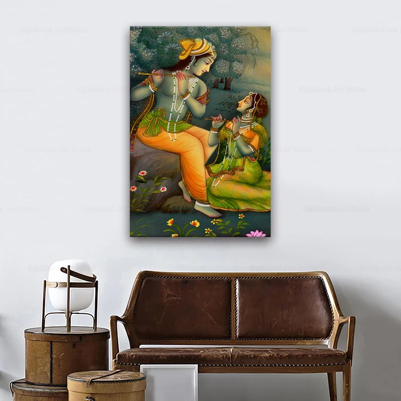 Индийская религия лорд радха кришна Холст Картина плакаты-портреты ...