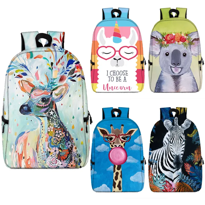 Симпатичные животные Жираф коала рисунок Альпака рюкзак для подростков школьные сумки для мальчиков и девочек, рюкзак для мужчин и женщин Портативный большой Ёмкость сумка