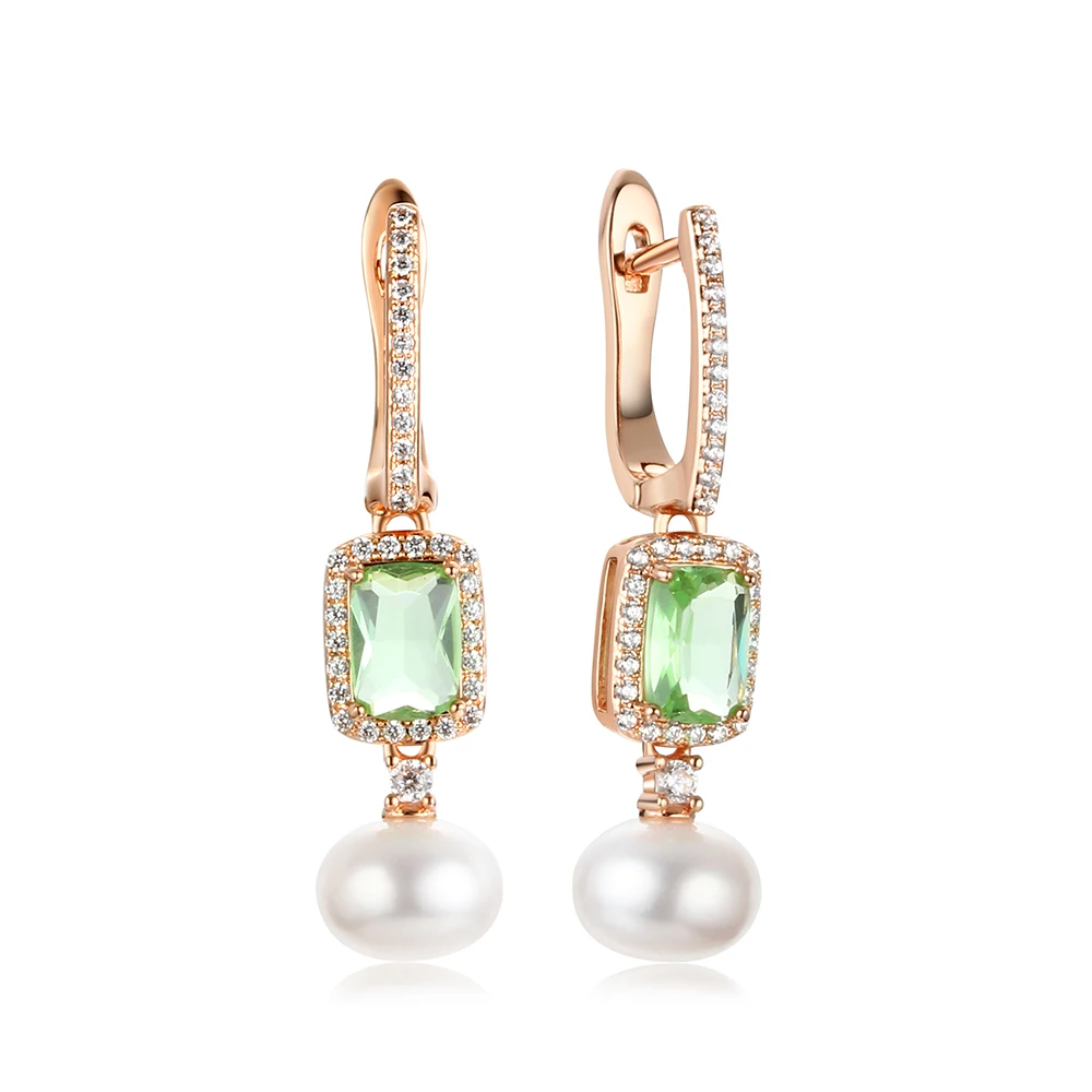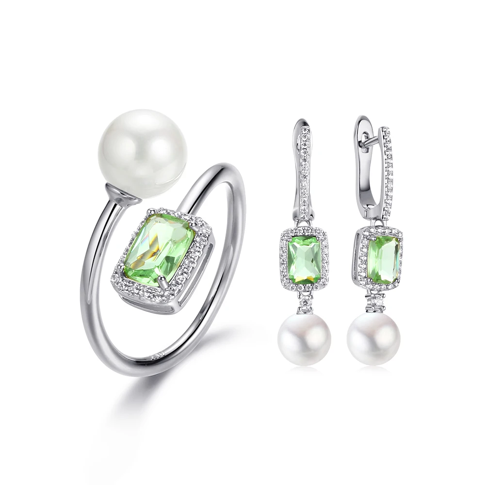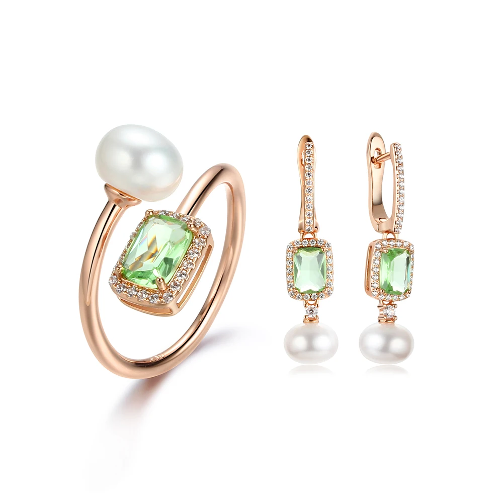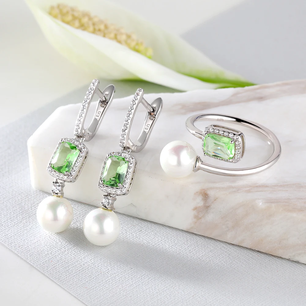 Модные Зеленые циркониевые прямоугольные жемчужные серьги высокого качества кольцо женская повседневная одежда Вечерние ринки юбилея оптовая продажа