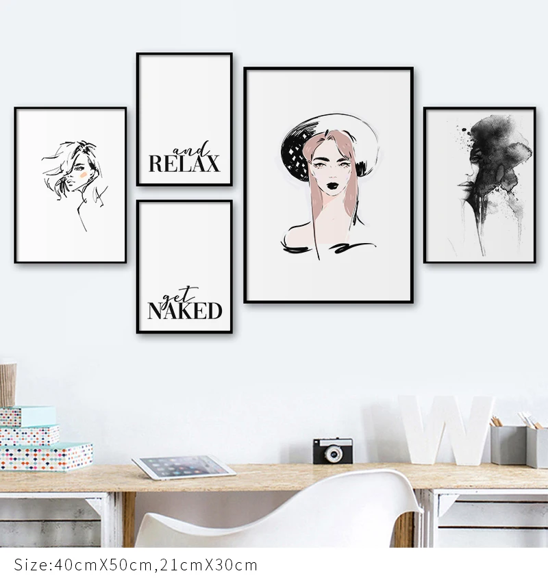 Черно-белая Абстрактная Картина на холсте женщина получить голый принт настенный художественный постер скандинавский Модный рисунок для гостиной спальни Декор