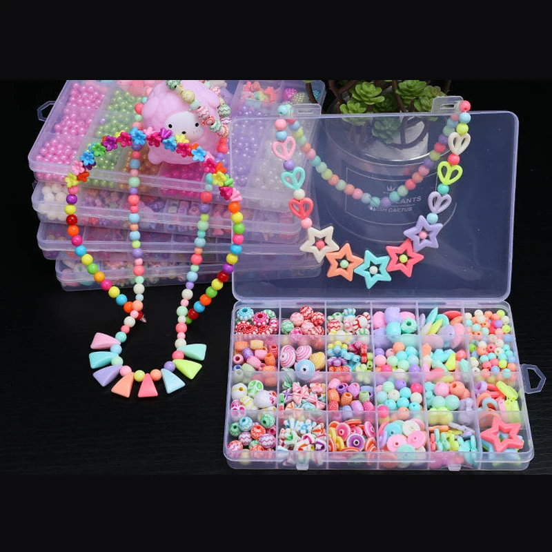 DIY бусы, игрушки для детей 24 Сетки, ручная работа, для малышей, изготовление пазлов, бусы для девочек, Набор браслетов, игрушки для девочек 3, 5, 7, 9, 11