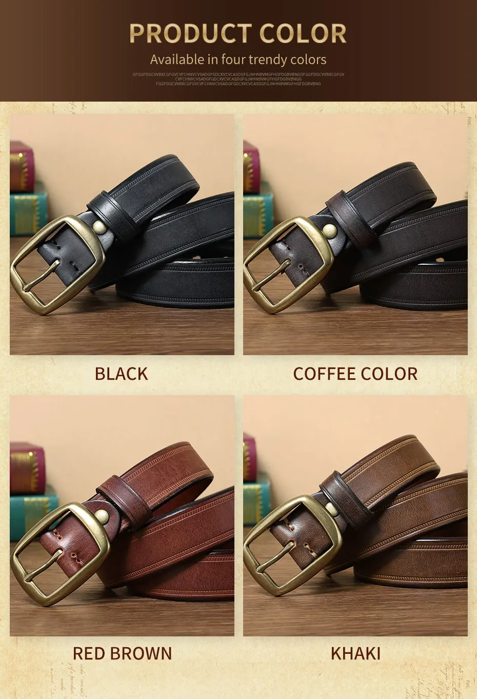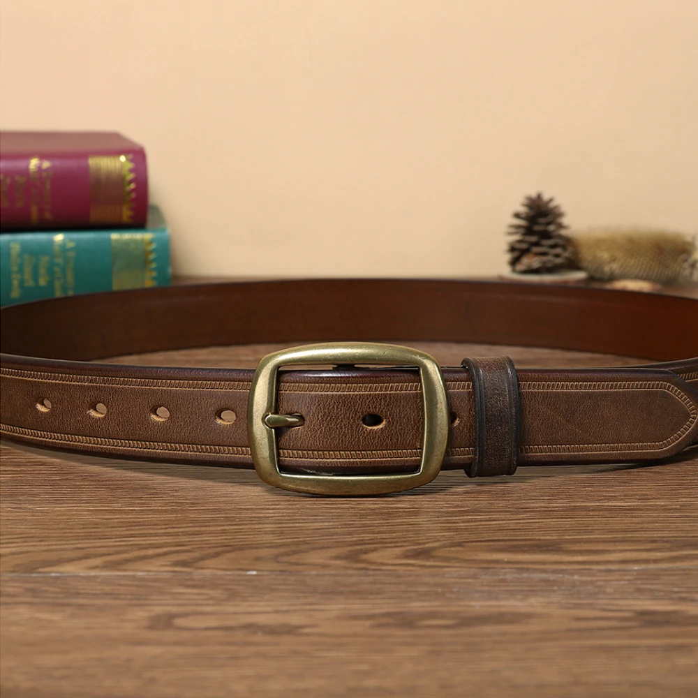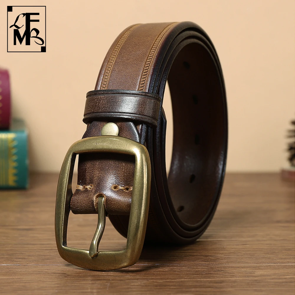 Ремень LFMB мужской из натуральной воловьей кожи, деловой элегантный винтажный пояс с пряжкой с язычком для джинсов