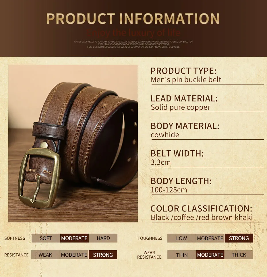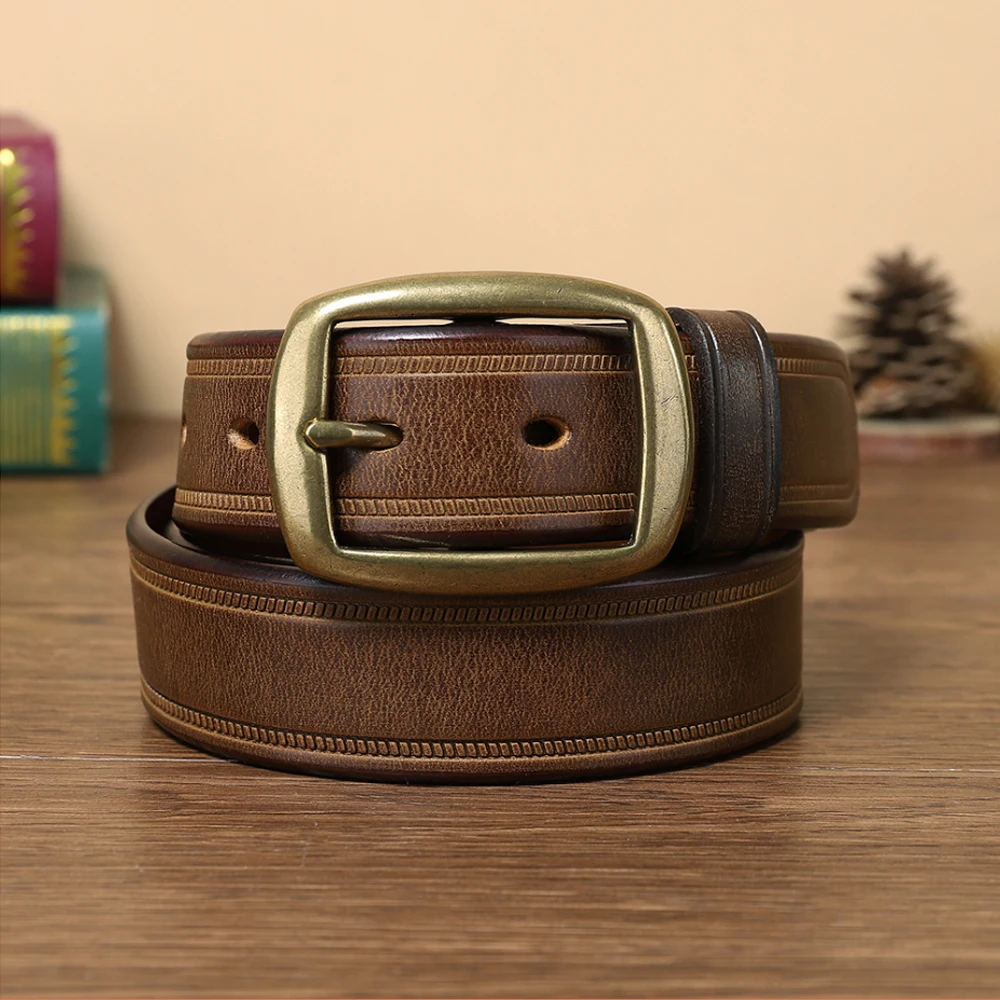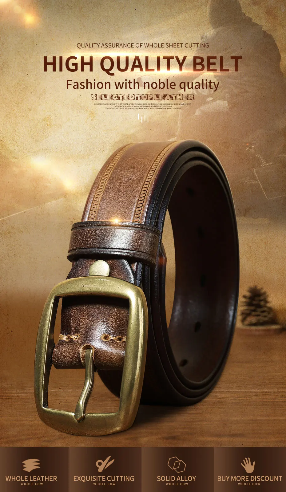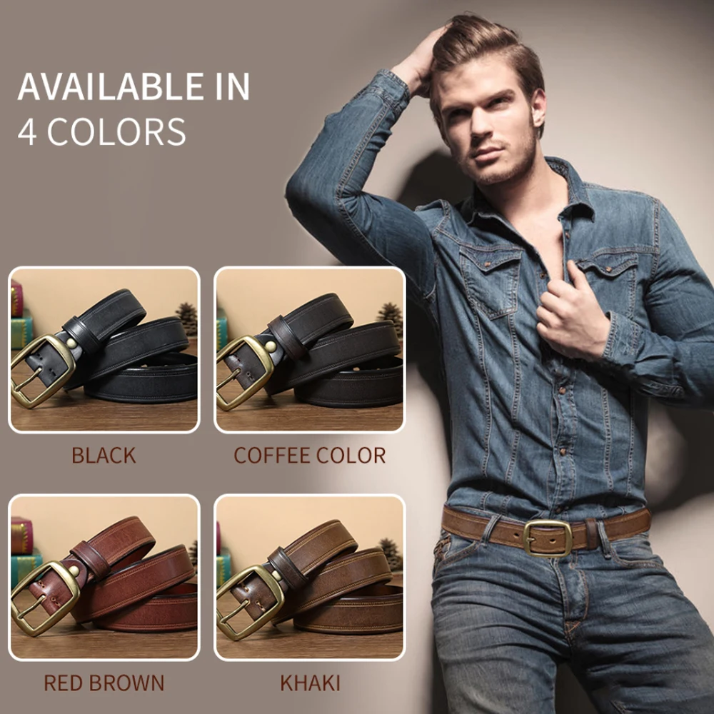 Ремень LFMB мужской из натуральной воловьей кожи, деловой элегантный винтажный пояс с пряжкой с язычком для джинсов