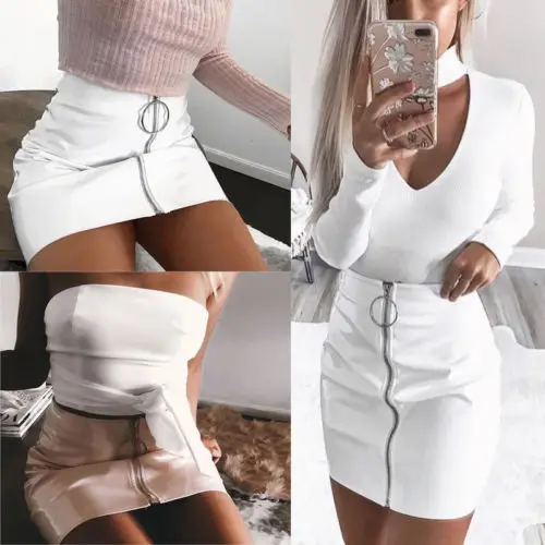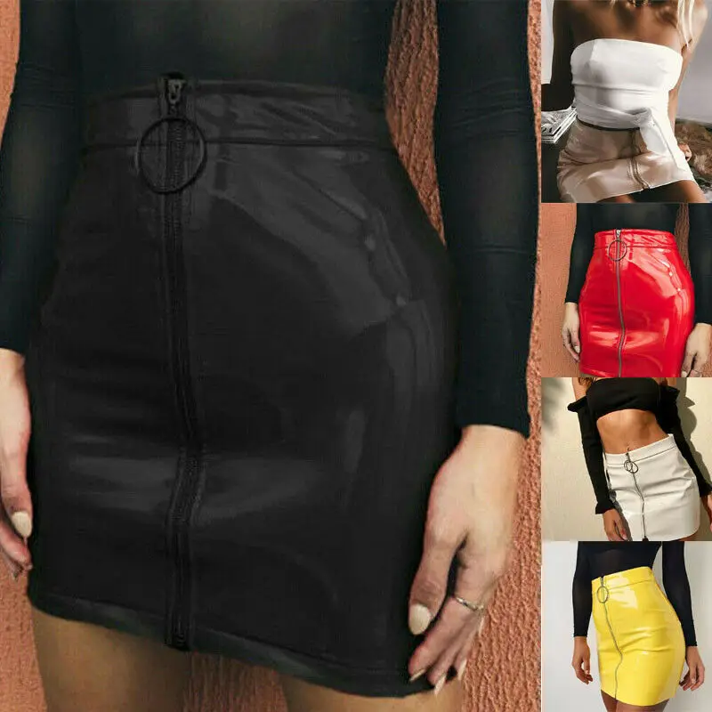 Новые модные пикантные женские туфли-лодочки из искусственной кожи с юбкой с высокой талией на молнии Особенности короткая мини-юбка вечерние клубная одежда размеры S, M, L, XL