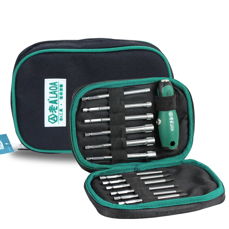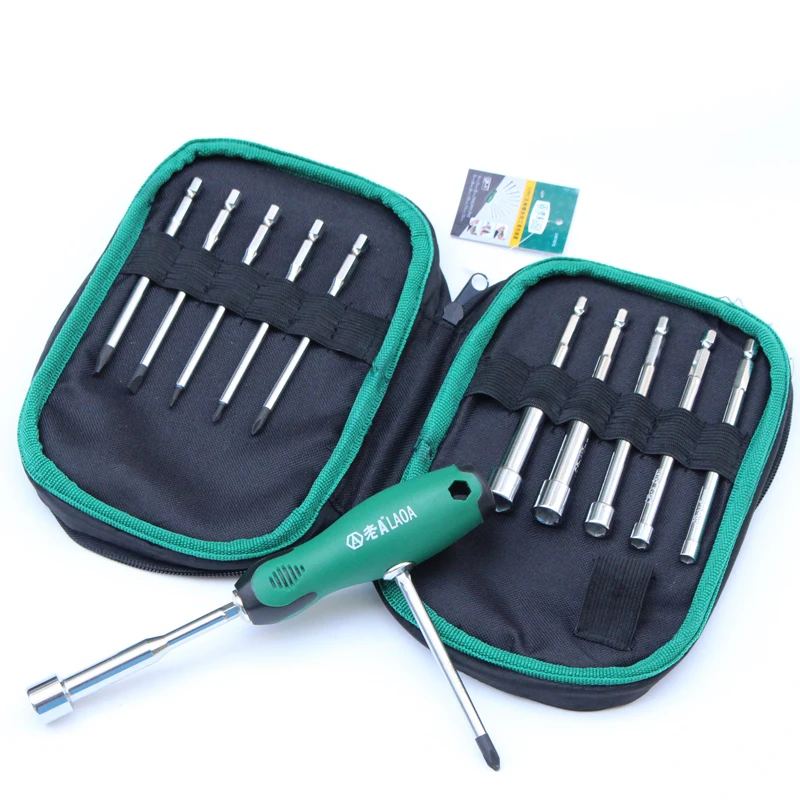 Тайвань-LAOA swaps 12 в 1 взаимозаменяемыеНабор отверток, многофункциональный дизайнРучка, вы можете конвертировать как Т-образные, так и прямыеПрактично. Отвертки из хромированной ванадиевой сталиСтержень, твердость около 58 градусов, износостойкий иПрочный, дизайн гнезда глубокого отверстия, отверстие 28 мм, многое другоеШироко используется, продукция с использованием сумки Oxford KitУпаковка, долговечность и удобство переноски.