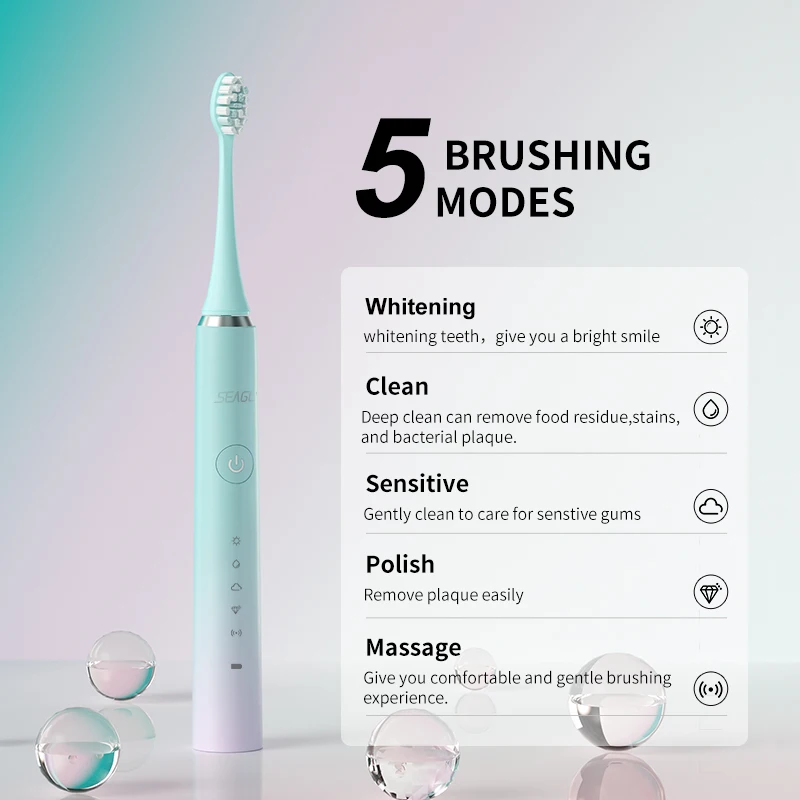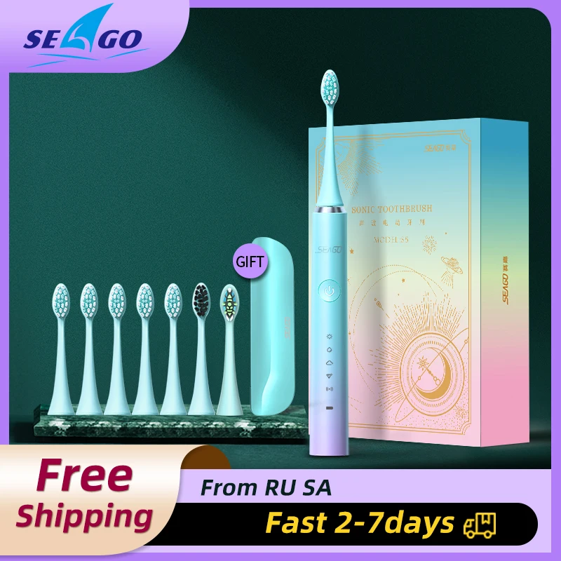 Электрическая зубная щетка SEAGO S5 для взрослых, водонепроницаемая быстро заряжаемая, 5 режимов, насадка для зубной щетки, для путешествий