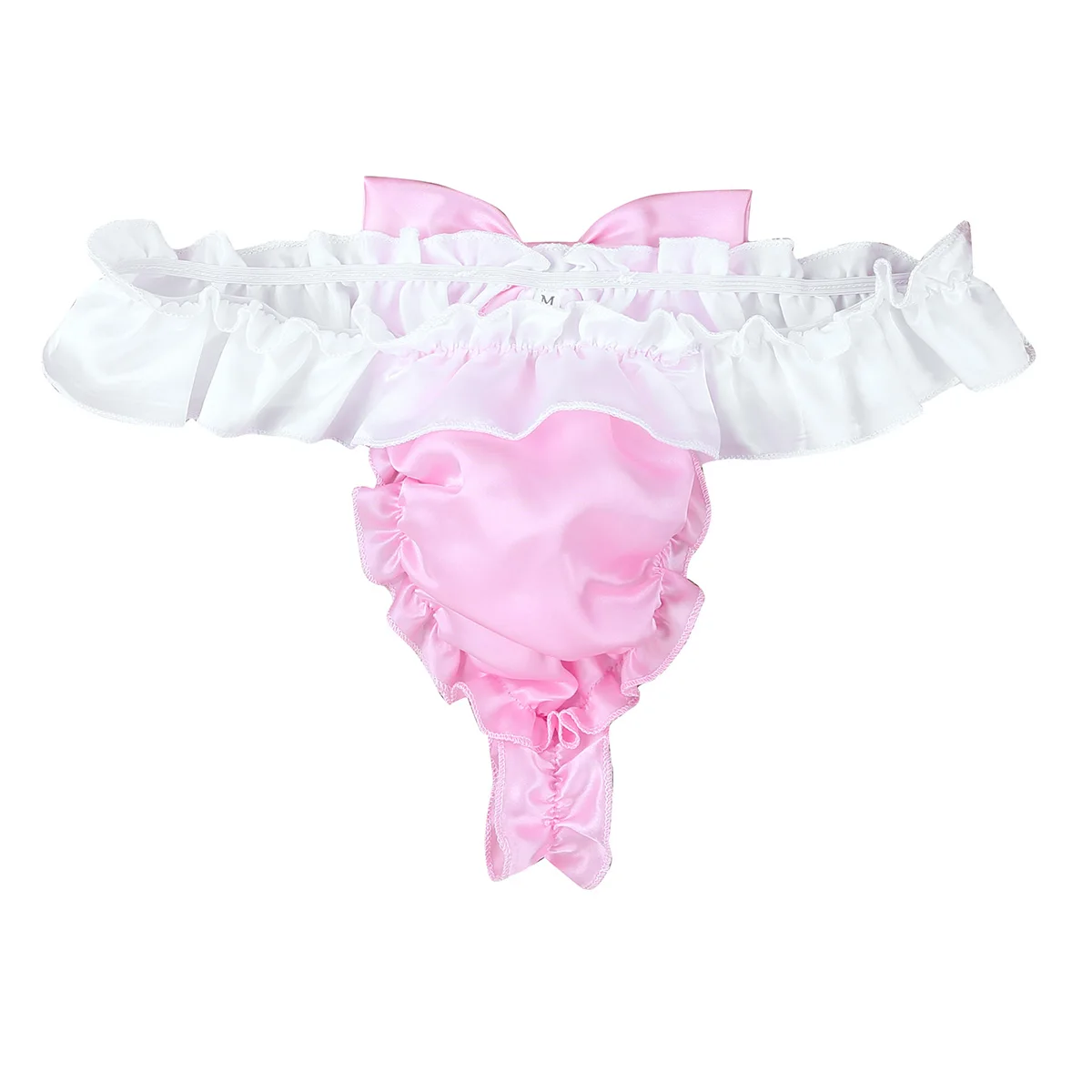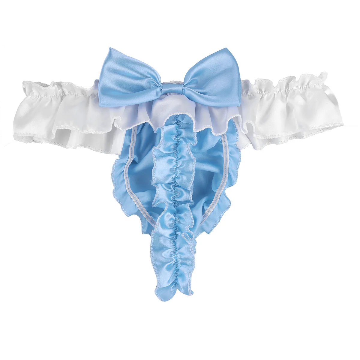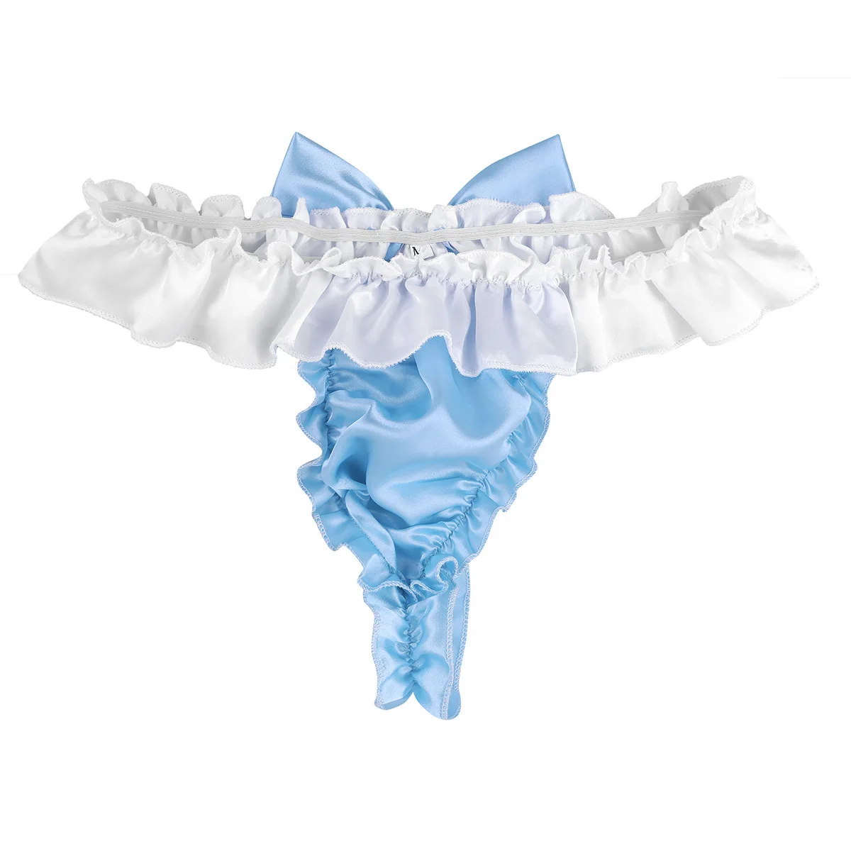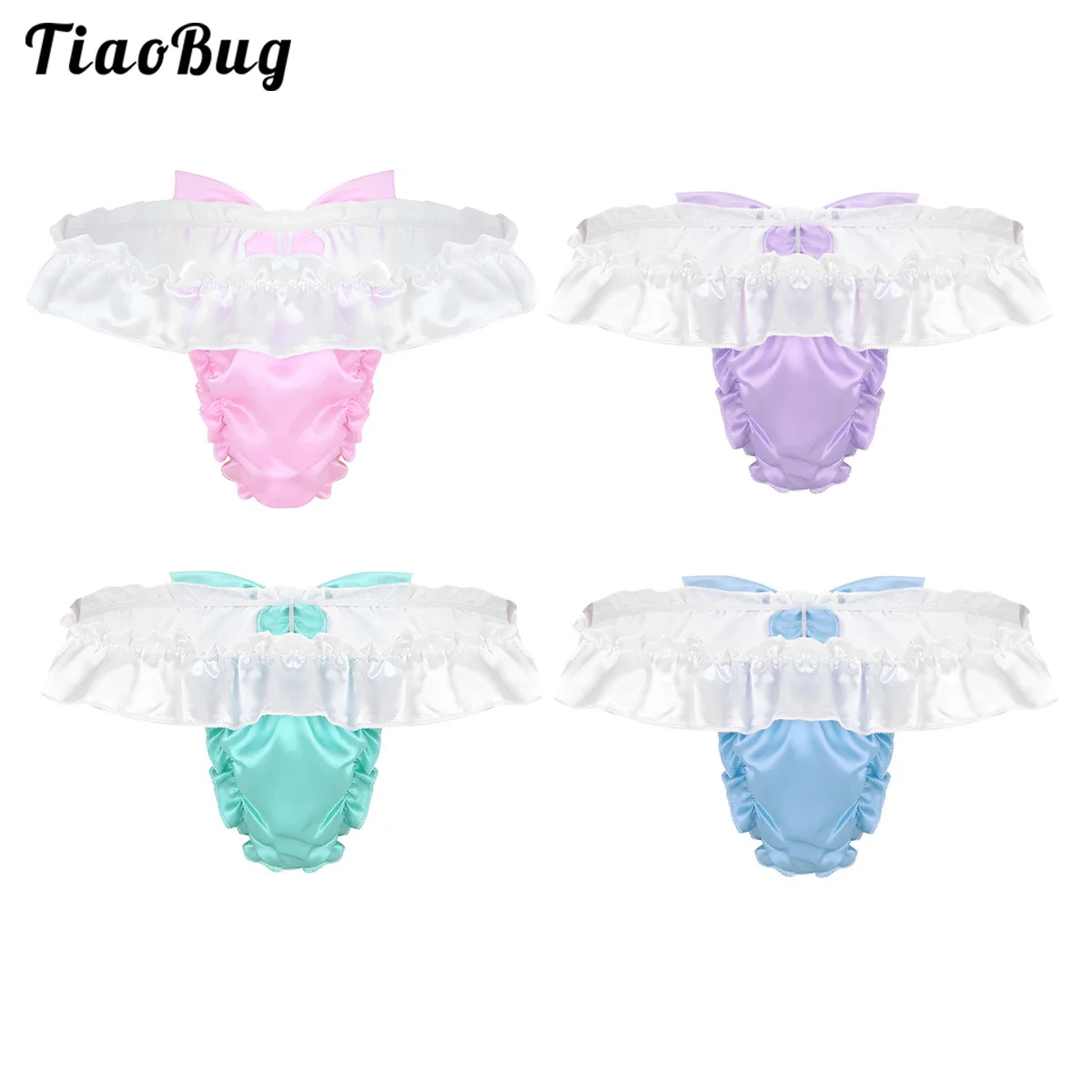Мужское блестящее мягкое атласное нижнее белье TiaoBug с оборками и бантом с оборками, бикини с высоким вырезом и низкой посадкой, стринги, нижнее белье, трусики