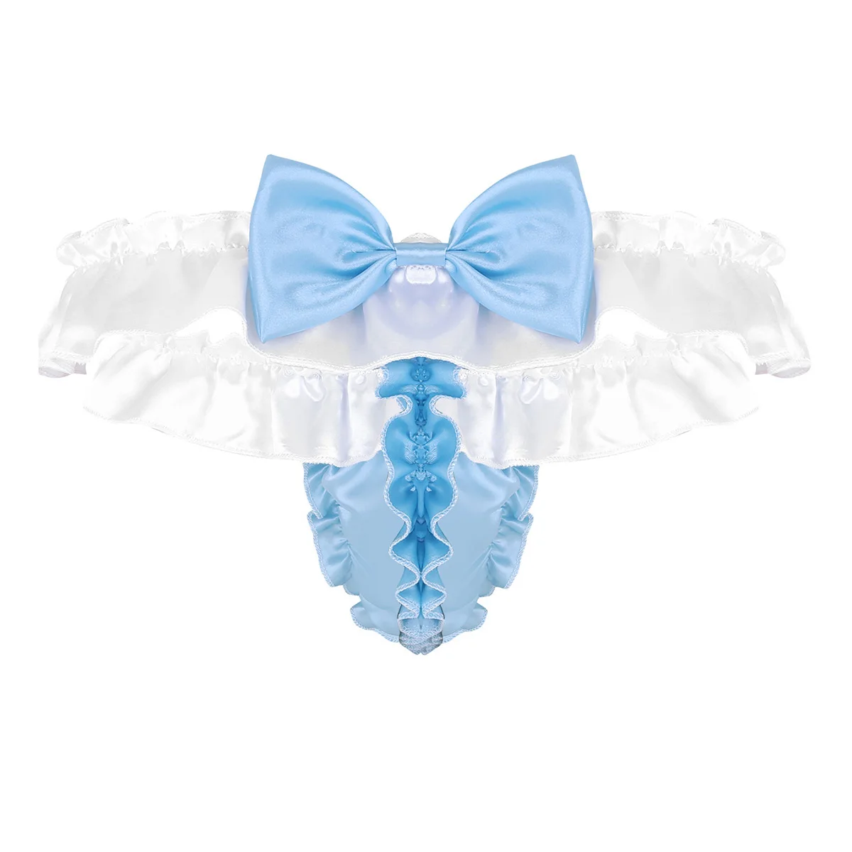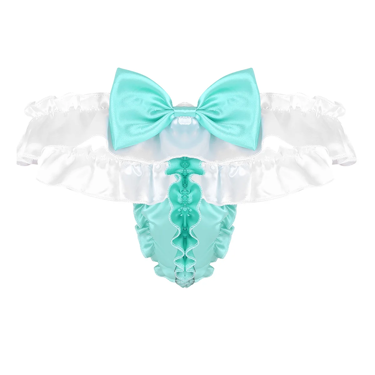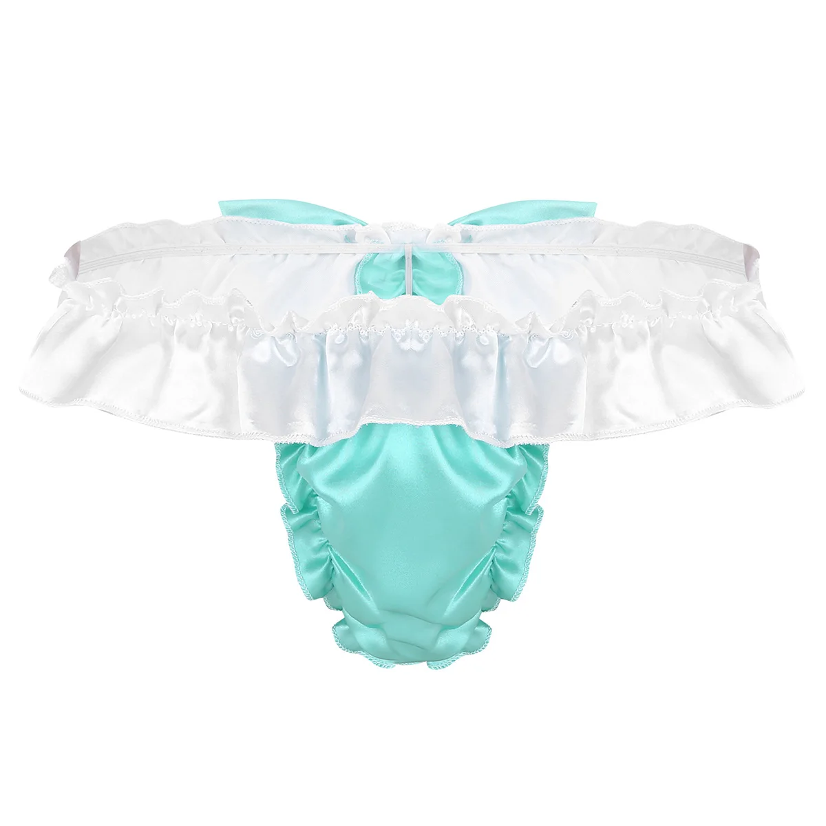 Мужское блестящее мягкое атласное нижнее белье TiaoBug с оборками и бантом с оборками, бикини с высоким вырезом и низкой посадкой, стринги, нижнее белье, трусики