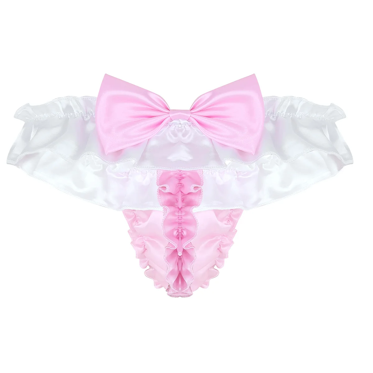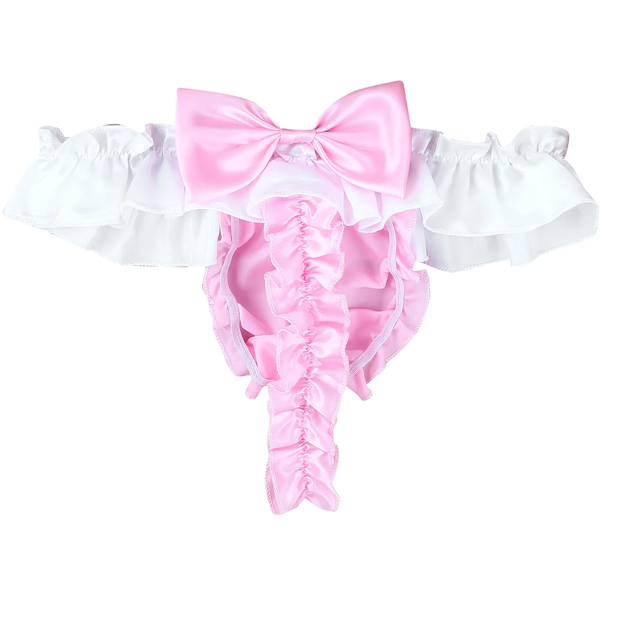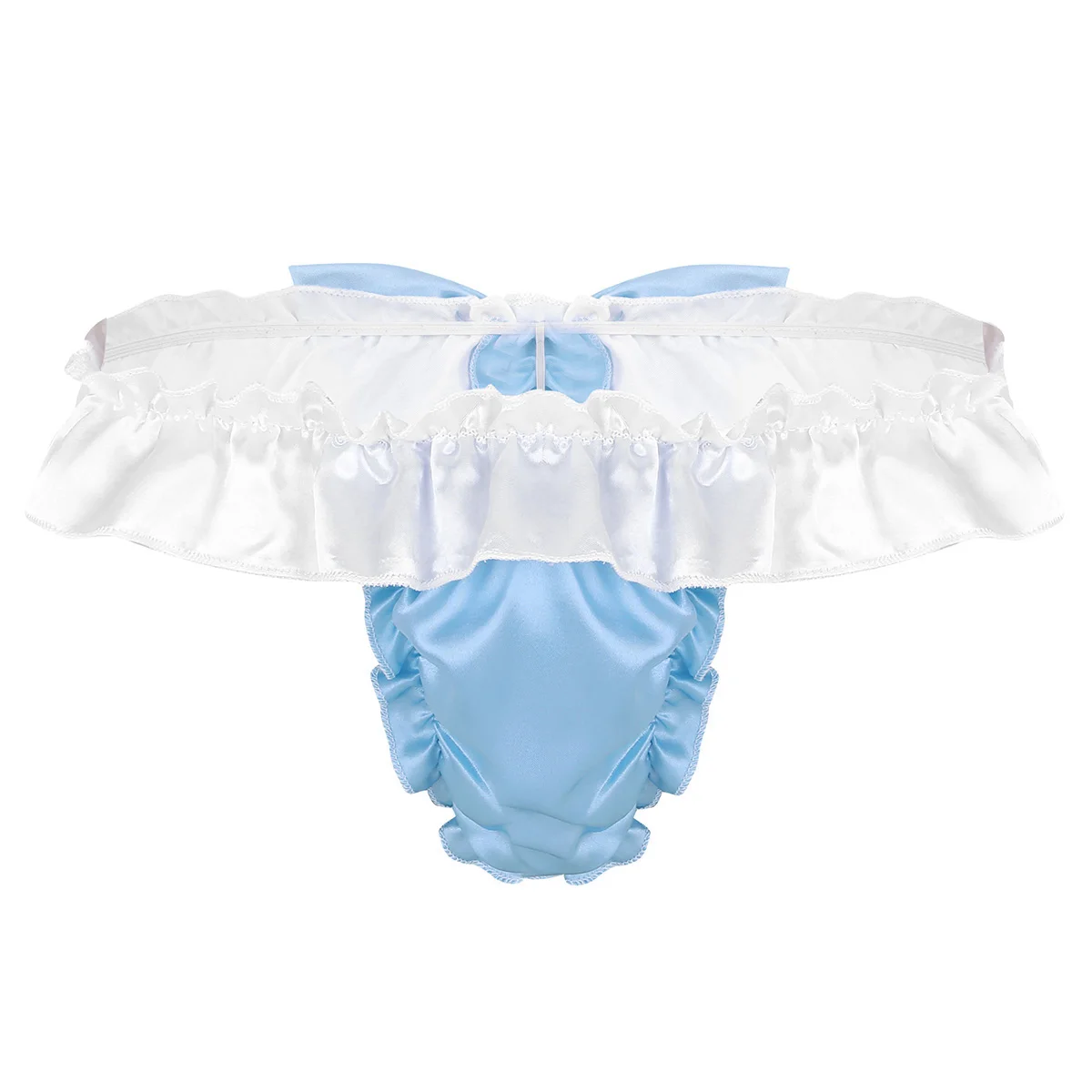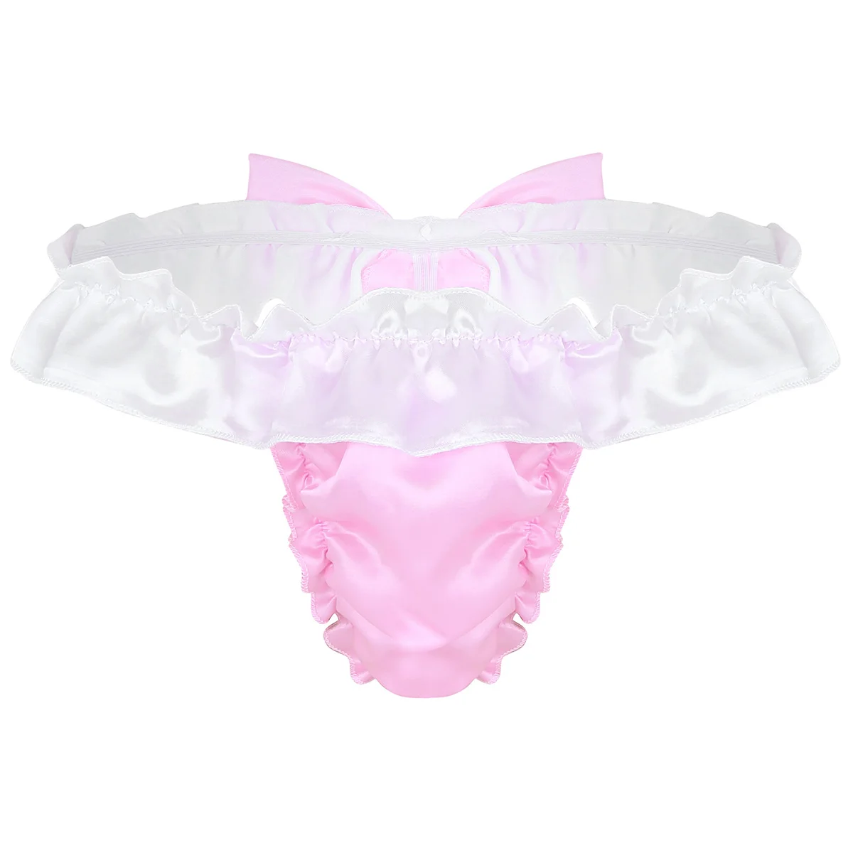 Мужское блестящее мягкое атласное нижнее белье TiaoBug с оборками и бантом с оборками, бикини с высоким вырезом и низкой посадкой, стринги, нижнее белье, трусики