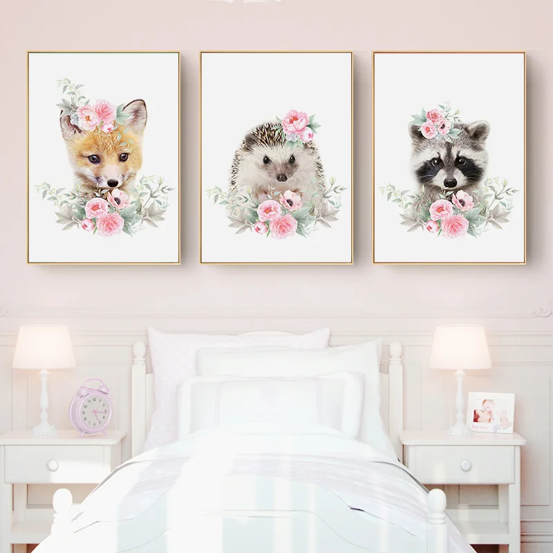Розовый цветок кролик стены искусства холст плакаты и принты животн...