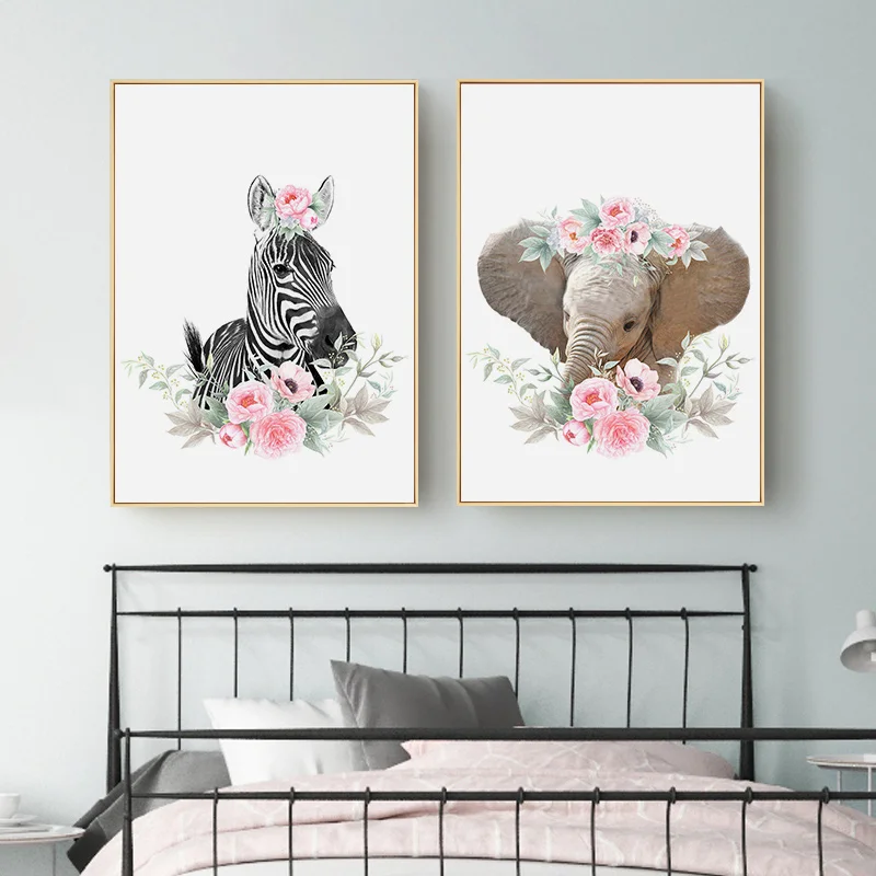Мультяшные Животные Слон воздушный шар Детская настенная Картина на...