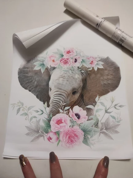 Рисунок на холсте со слоном, жирафом, детской фотографией