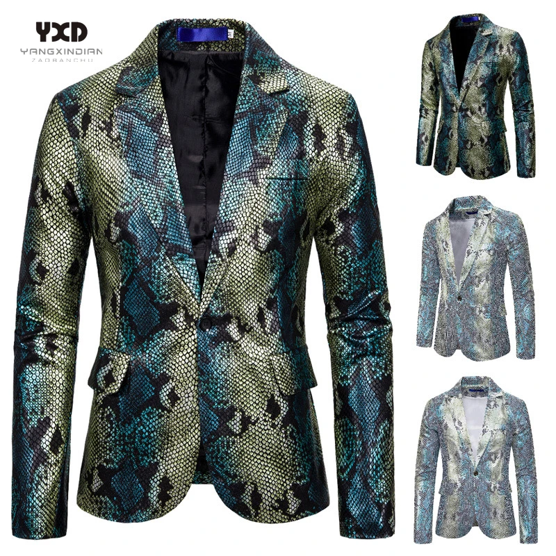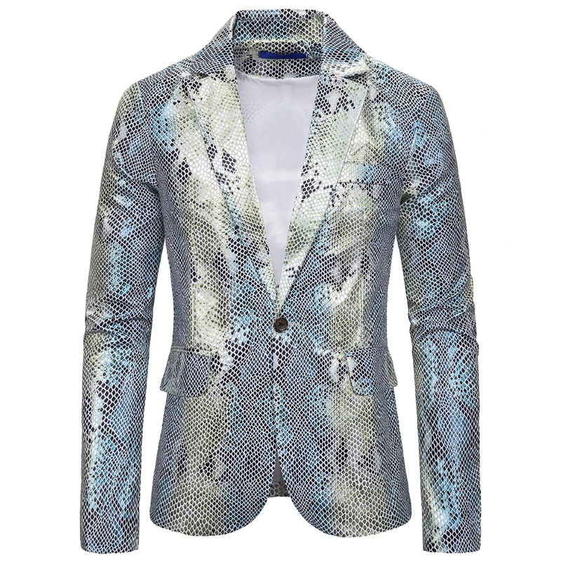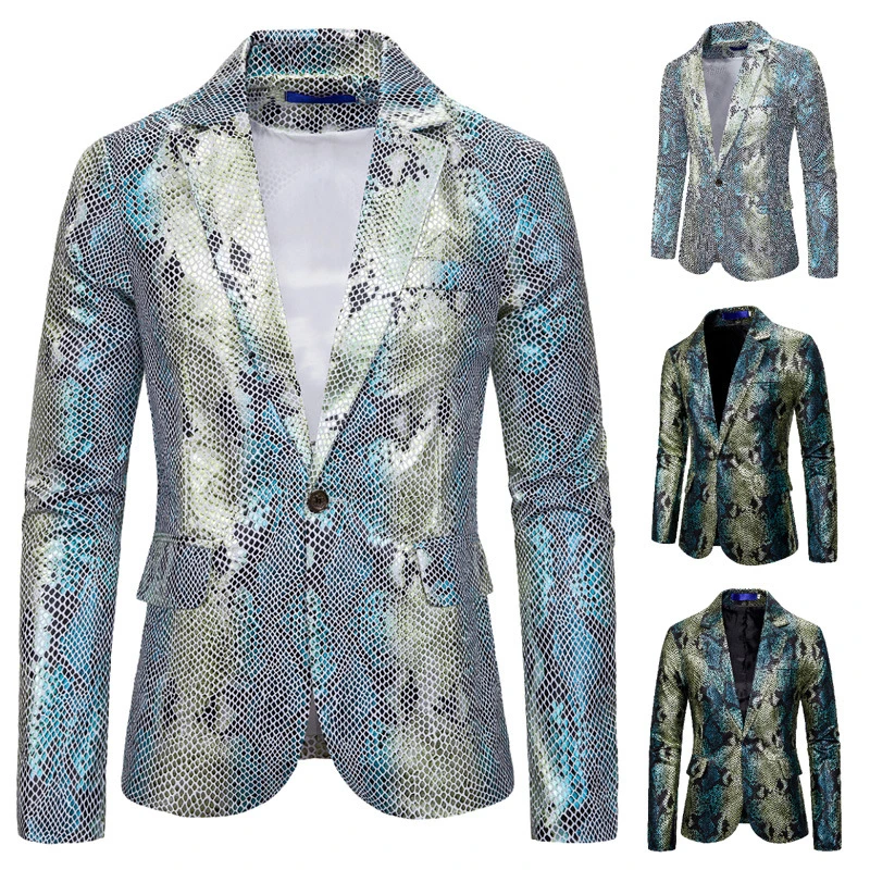 Мужской Блейзер, мужской костюм, пиджак, мужской Тонкий Повседневный Блейзер, masculino, блестящий блейзер с рыбками, бронзовая ткань, для сцены, вечерние пальто градиентной окраски