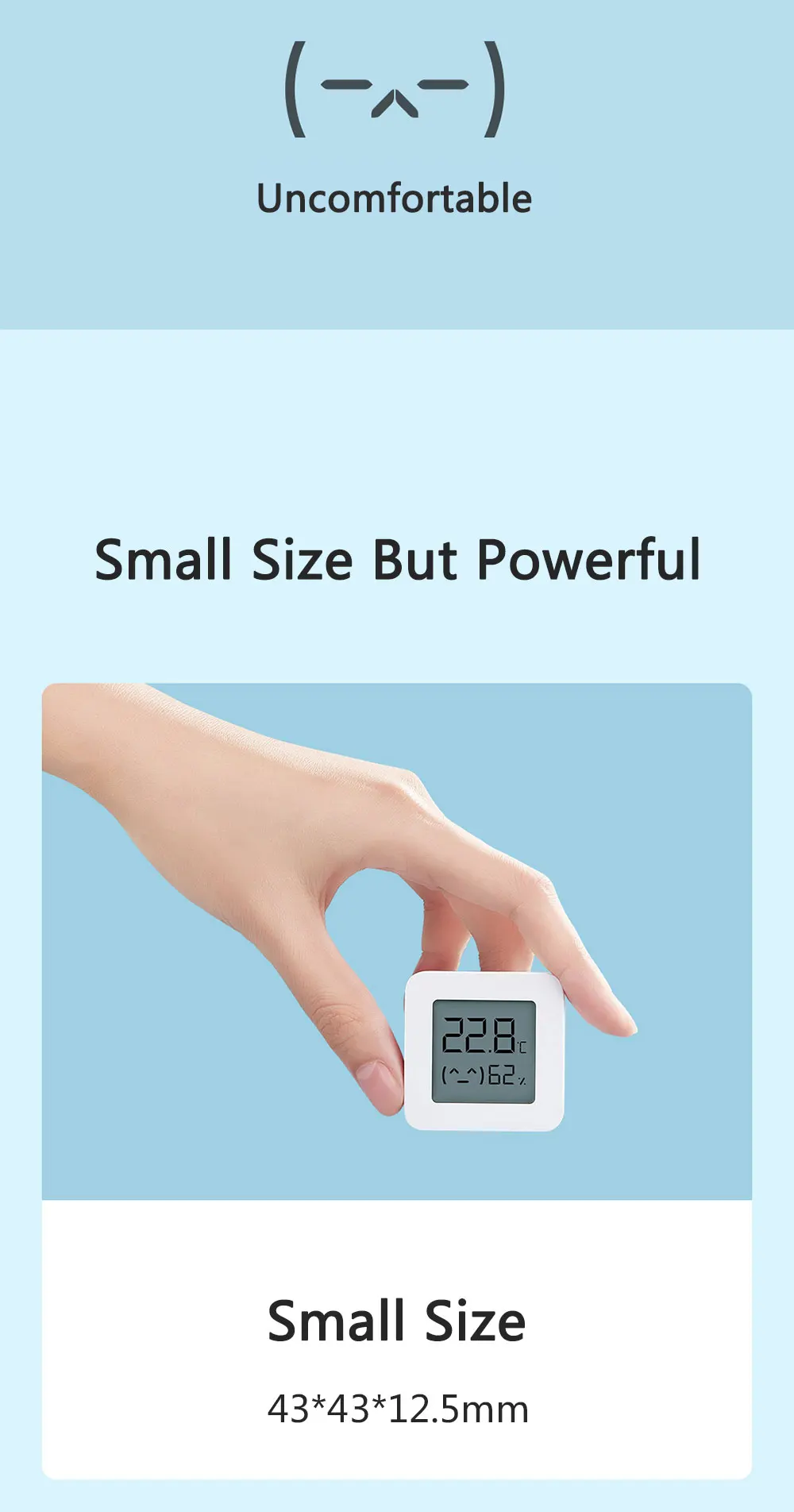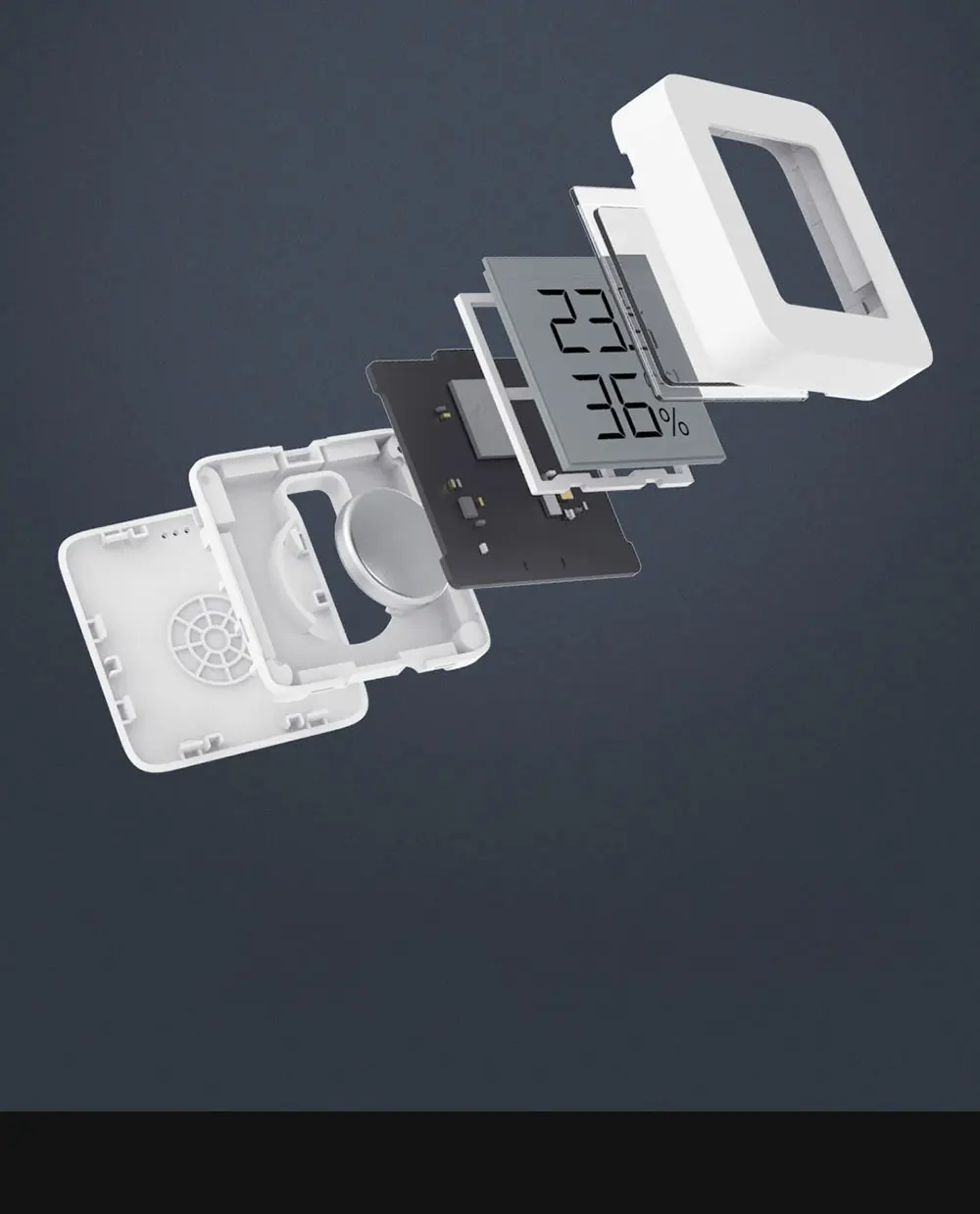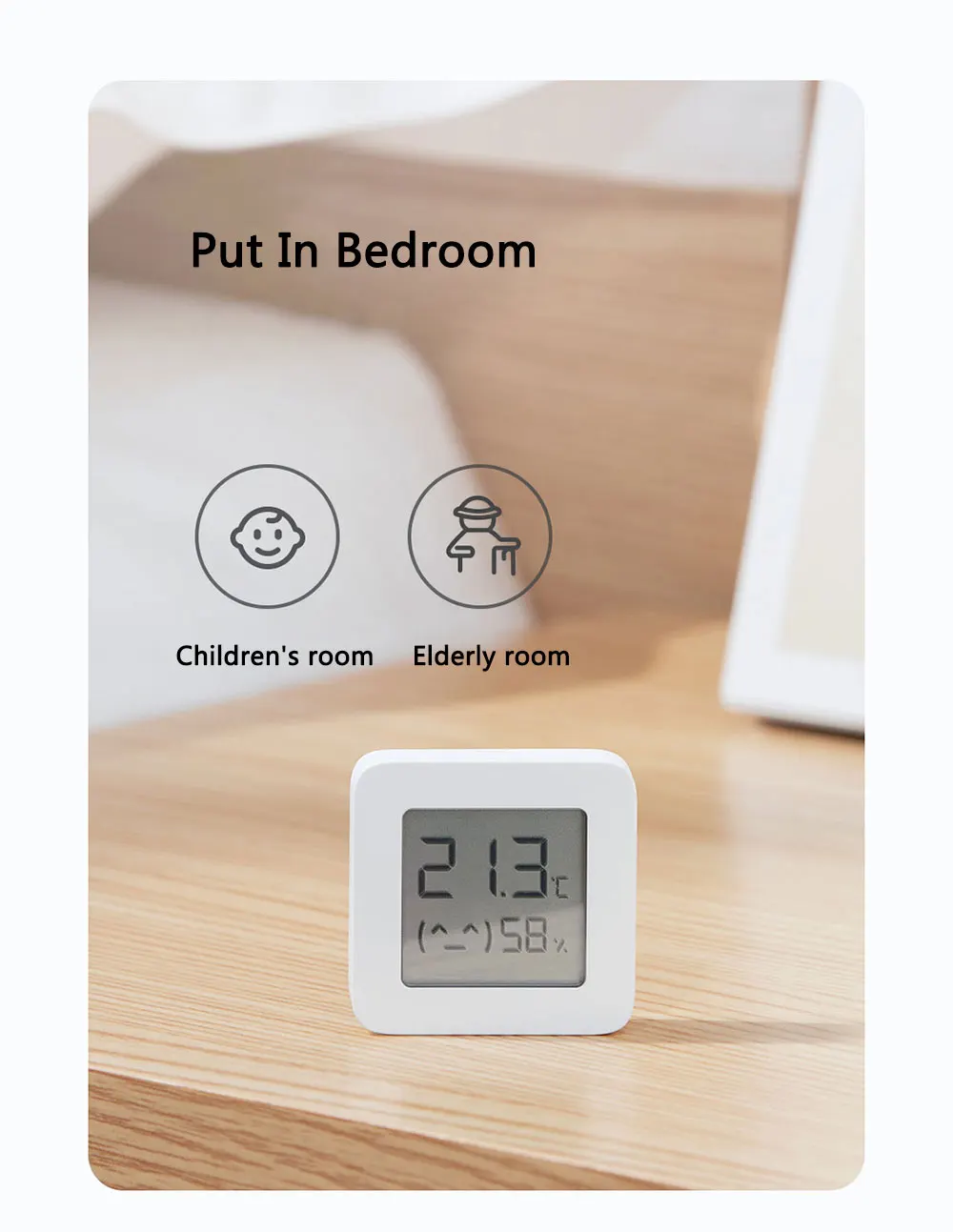 Особенности* 1,5 дюймов ЖК-дисплей цифровым дисплеем, более четким и высокой четкости.* Милый дизайн с режимом baby re mi nd и приложением mi Home.* Встроенный Швейцарский чувствительный Точный Цифровой Термометр* Тонкий и восхитительный размер, прочный экологически чистый материал ABS, легко помещается везде.* Два смайлика непосредственно напоминают о степени комфорта.* Питание от аккумулятора кнопки может обеспечить длительный срок службы.* Умная связь с кондиционером/умным нагревателем/влажностью и более интеллектуальными устройствами Mijia.