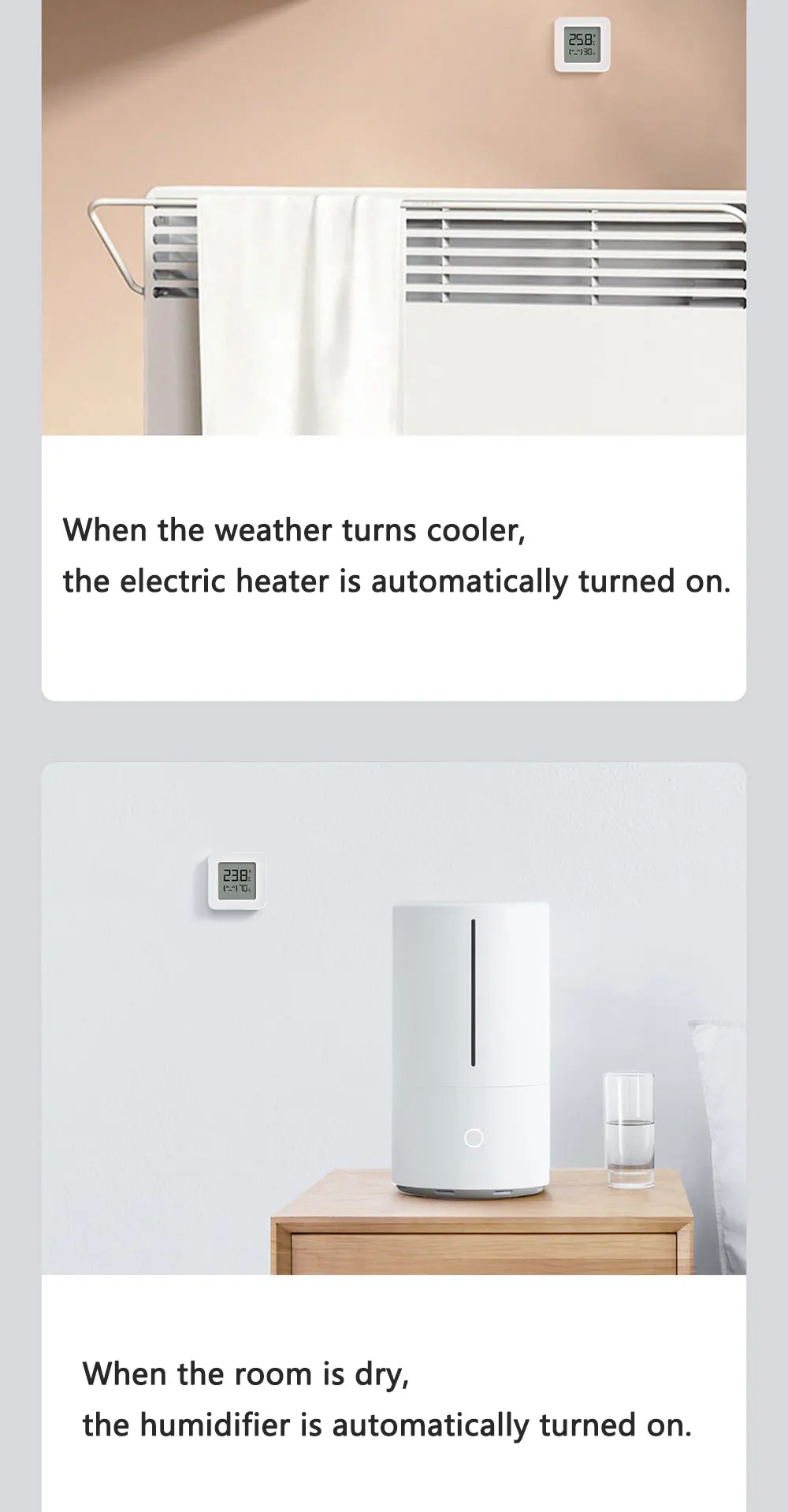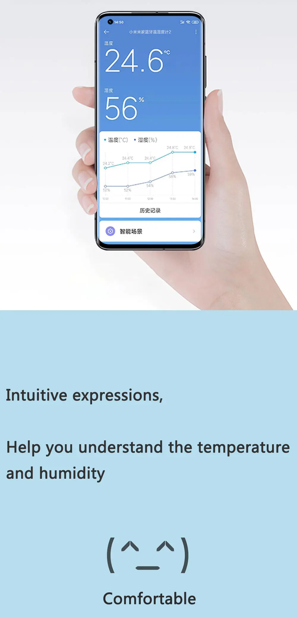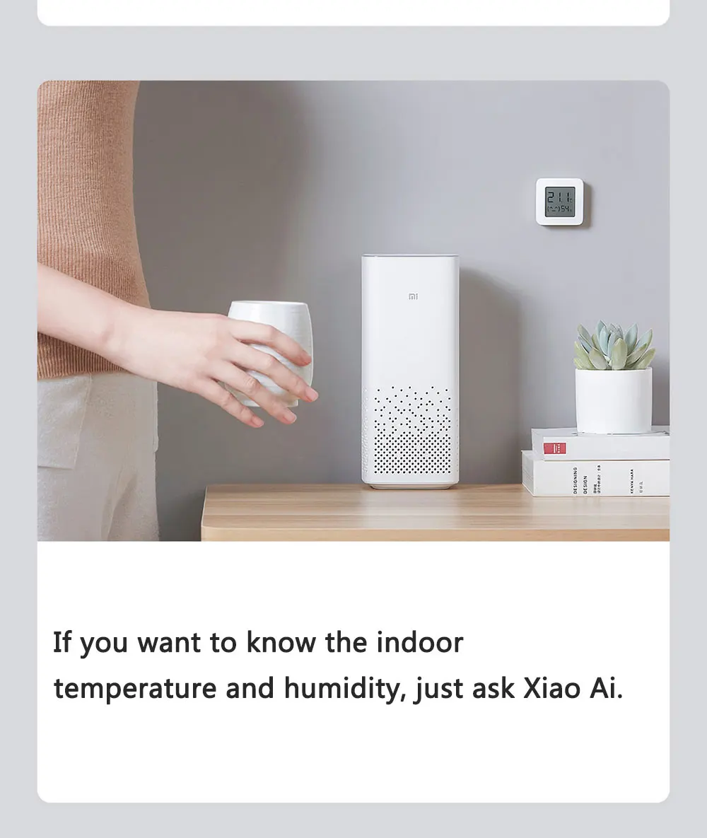 Особенности* 1,5 дюймов ЖК-дисплей цифровым дисплеем, более четким и высокой четкости.* Милый дизайн с режимом baby re mi nd и приложением mi Home.* Встроенный Швейцарский чувствительный Точный Цифровой Термометр* Тонкий и восхитительный размер, прочный экологически чистый материал ABS, легко помещается везде.* Два смайлика непосредственно напоминают о степени комфорта.* Питание от аккумулятора кнопки может обеспечить длительный срок службы.* Умная связь с кондиционером/умным нагревателем/влажностью и более интеллектуальными устройствами Mijia.