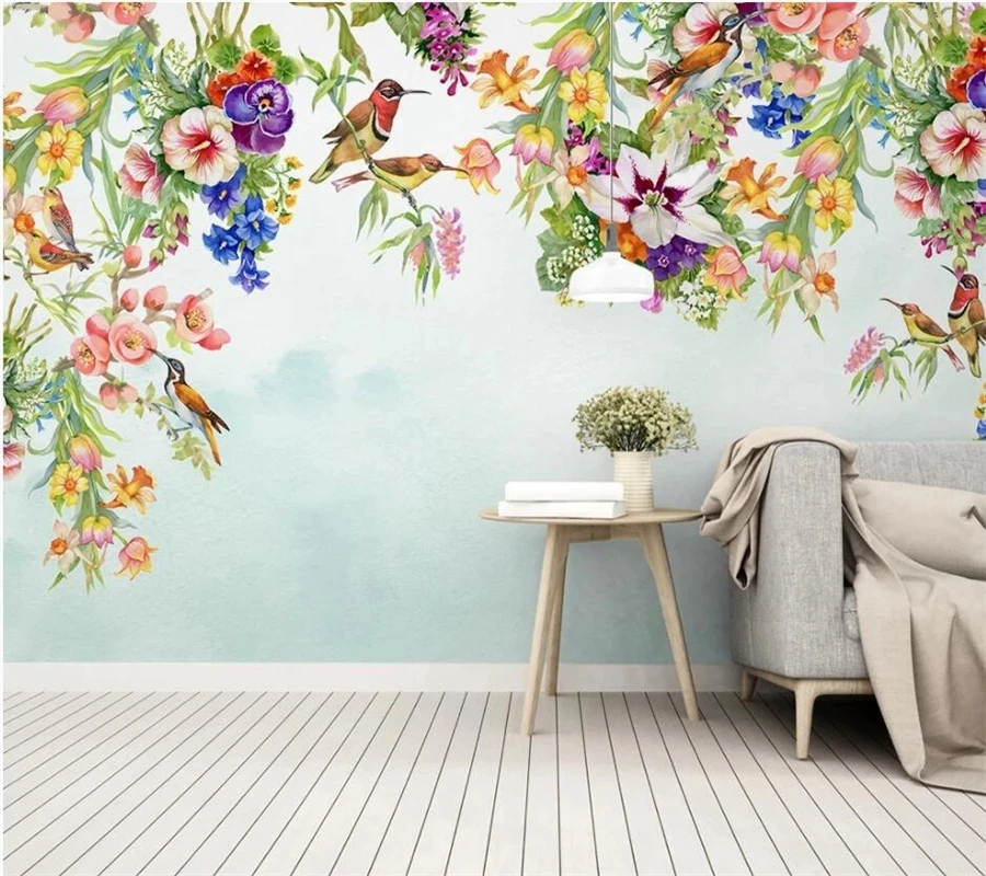 Настенная 3D фотообои на заказ, скандинавский фон с ручной росписью цветов, птиц, лилий, самоклеящиеся обои для гостиной, спальни