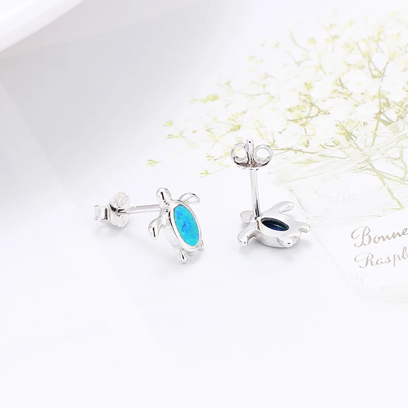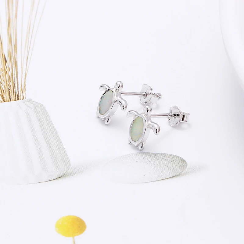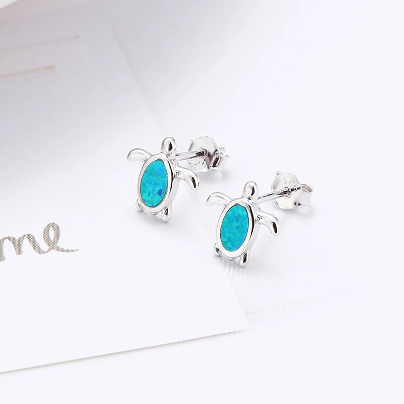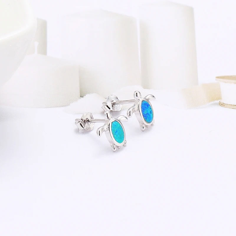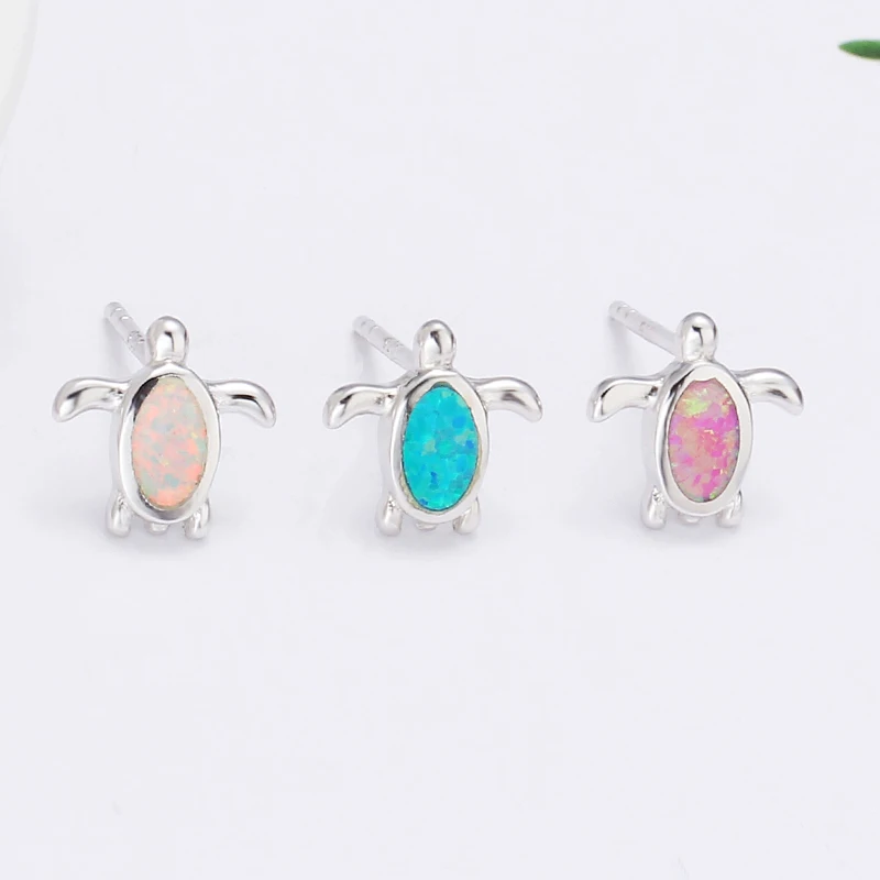 Милый маленький 925 Серебристые опаловые серьги с дизайном Черепаха для женщинмужчин Милая черепаха бижутерия повседневные OPE016